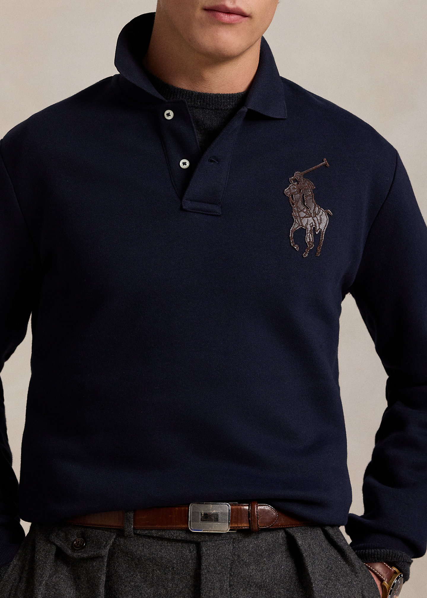- Leather patch of our signature Big Pony at the left chest.