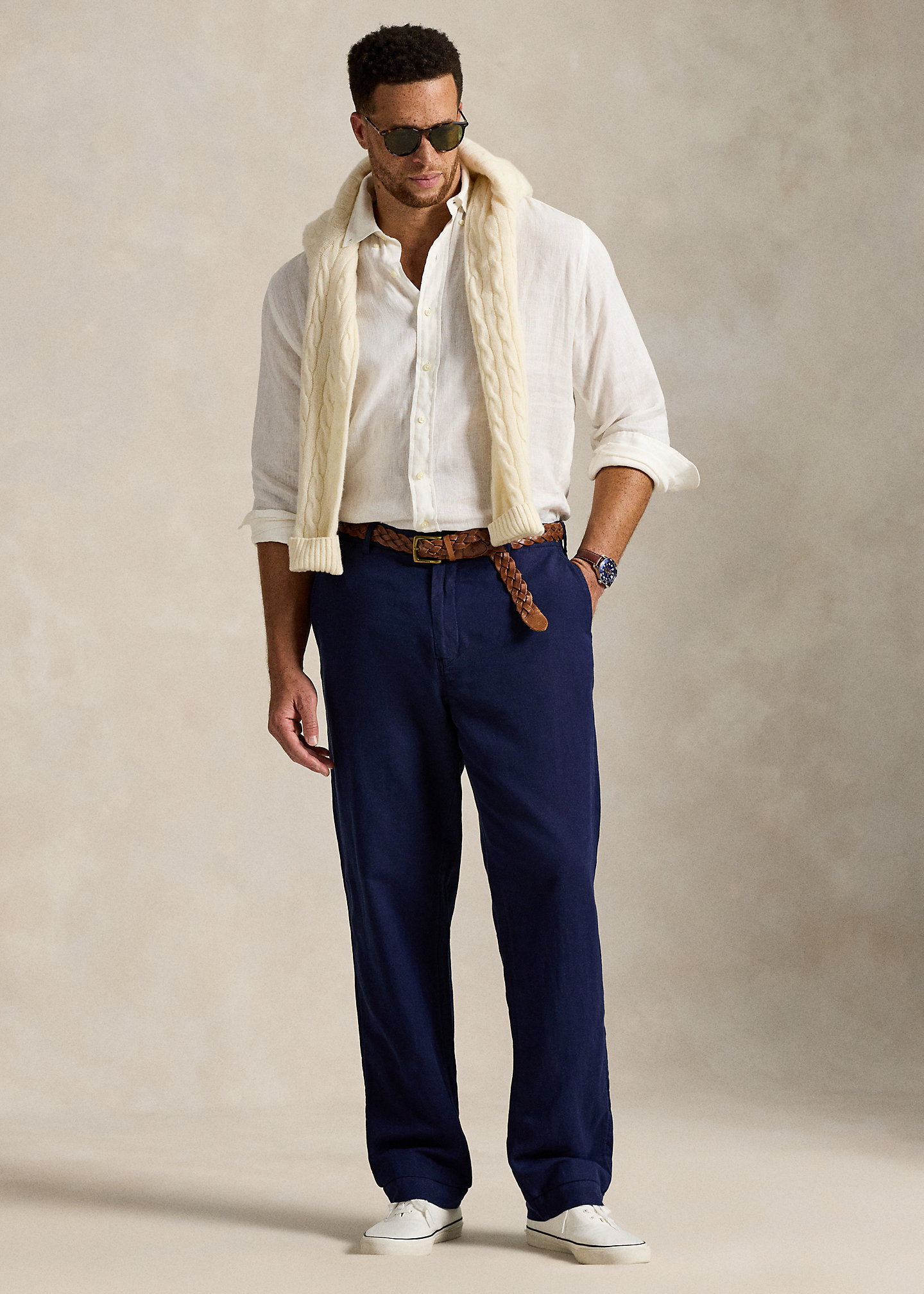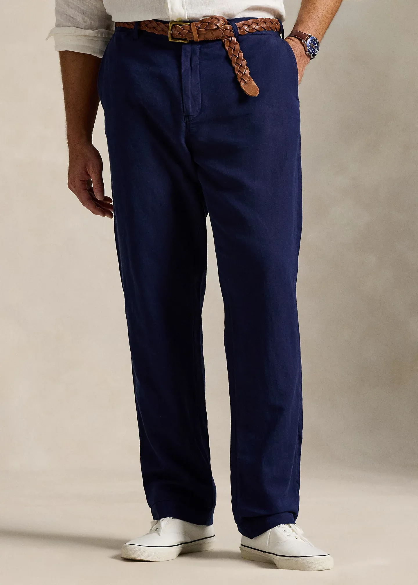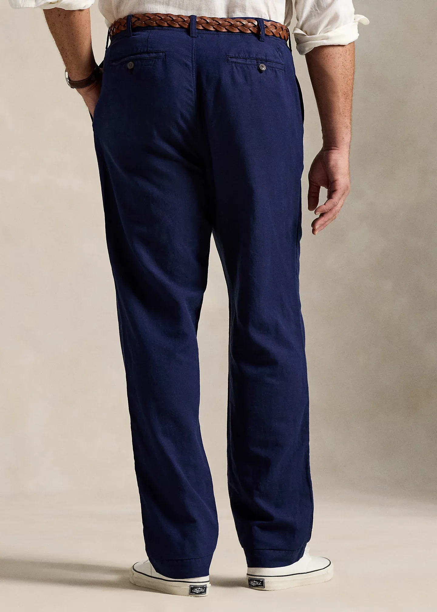 - Classic Fit: sits at the waist. Eased through the leg.
