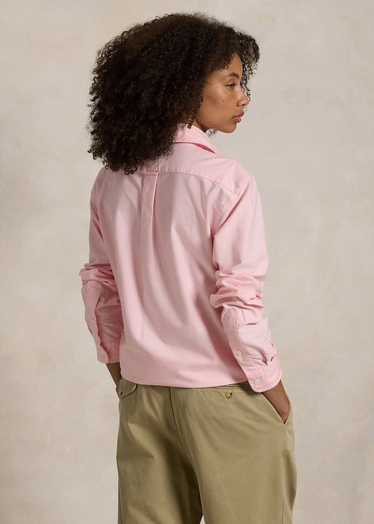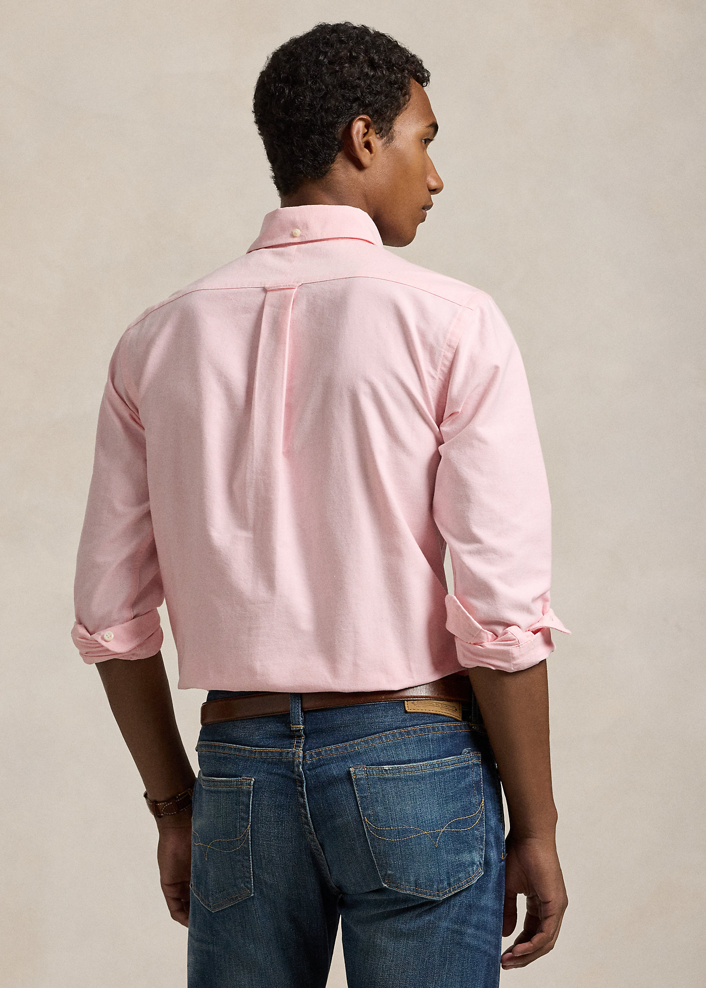 - Button-down point collar with a buttoned closure at the back. Buttoned half-placket. Long sleeves with buttoned barrel cuffs. Left chest buttoned pocket.