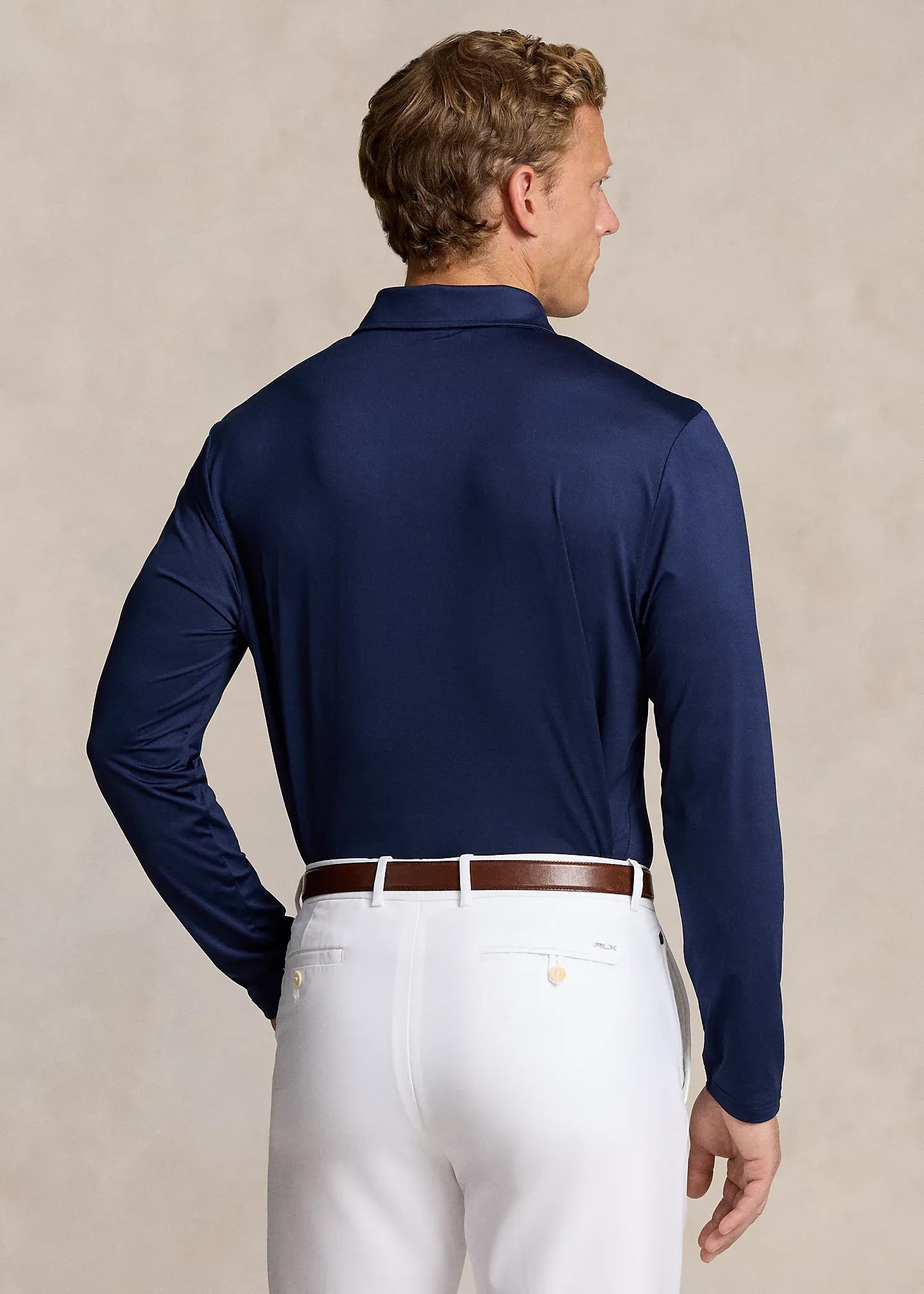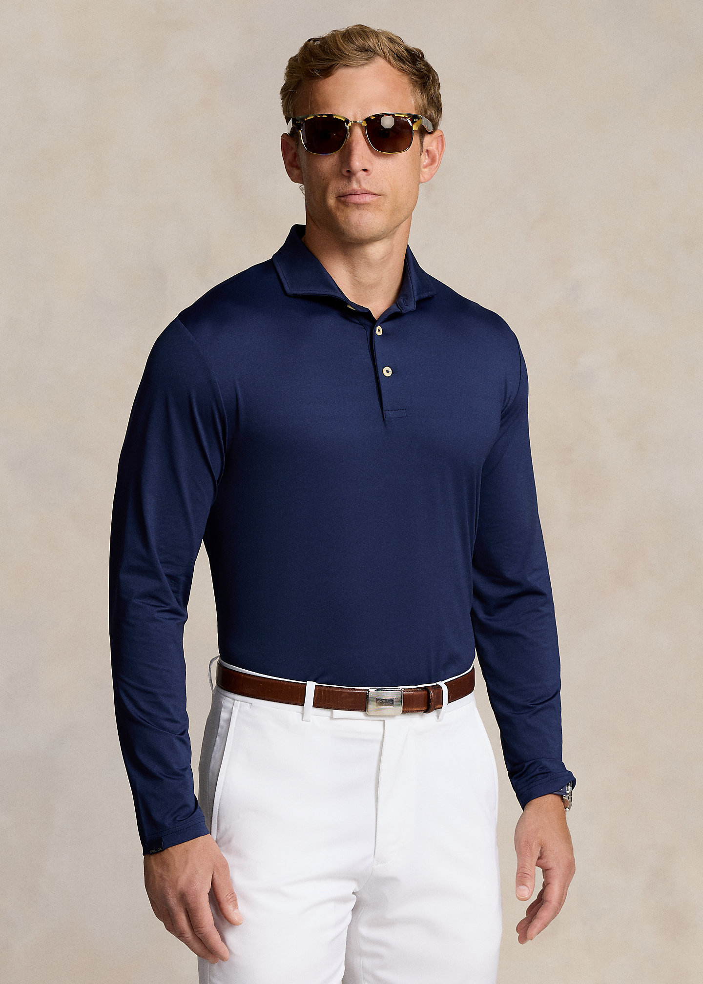 - Long sleeves. "RLX" loop at the right cuff.