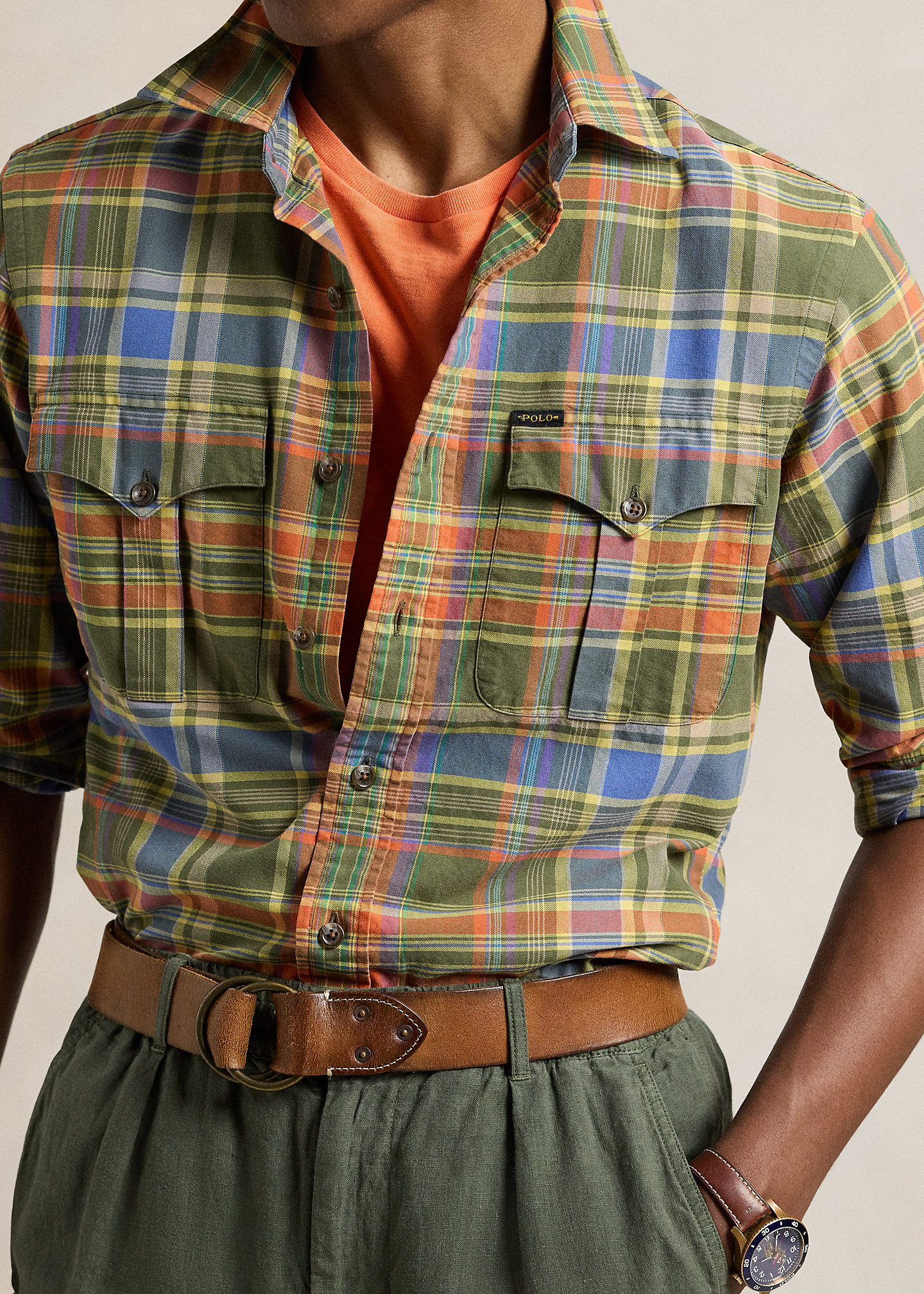- Two chest buttoned pockets. "Polo" label at the left pocket flap.