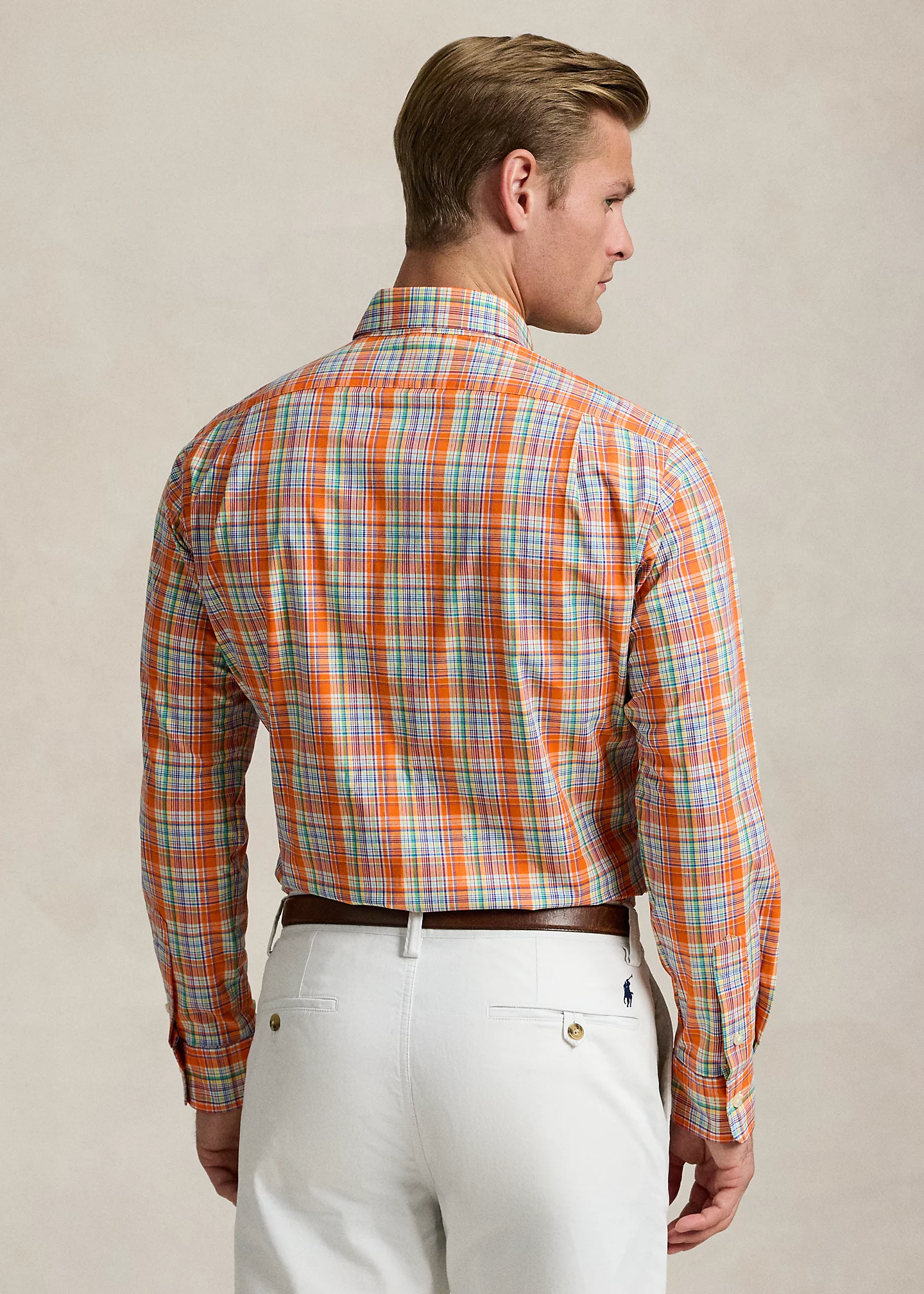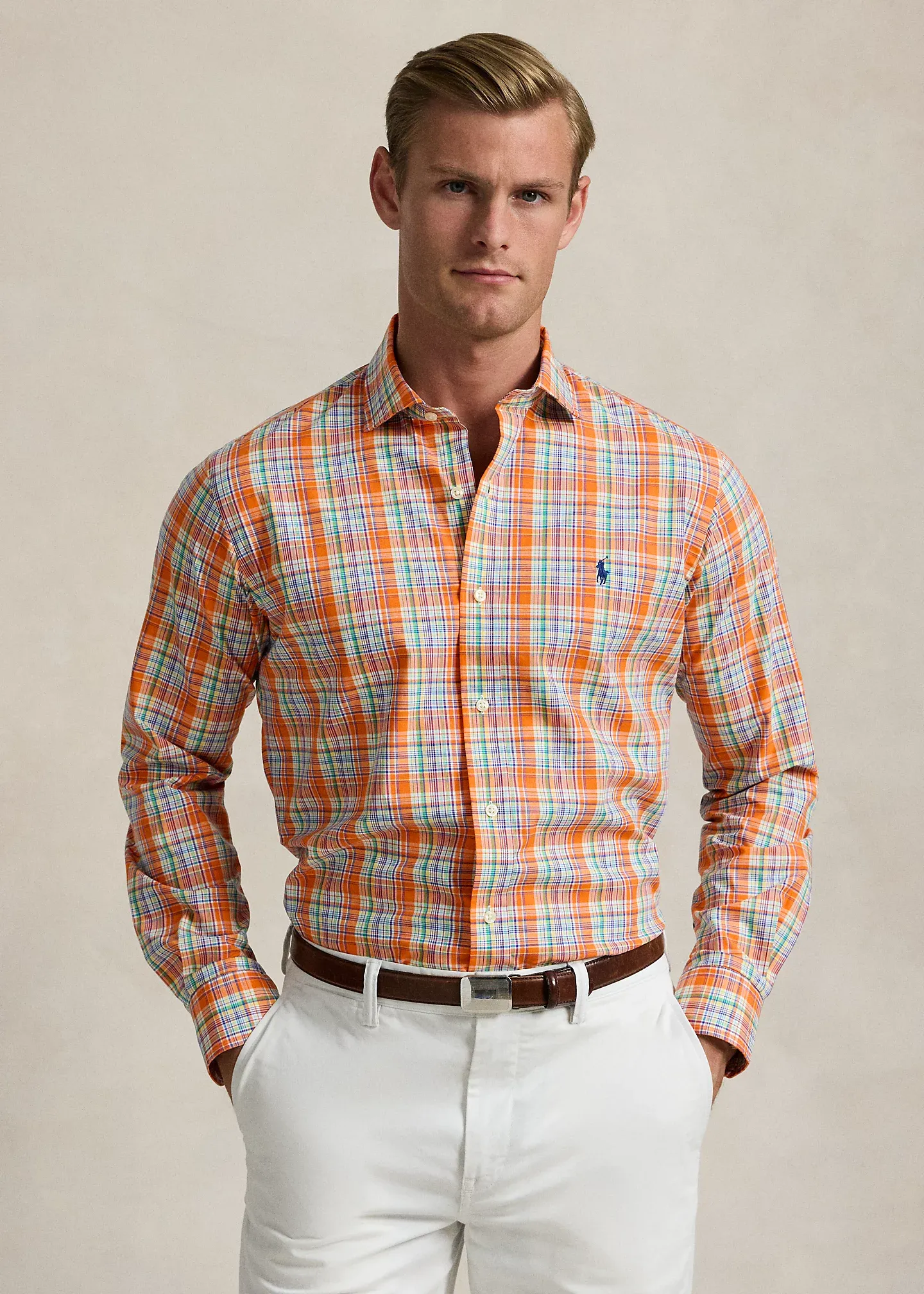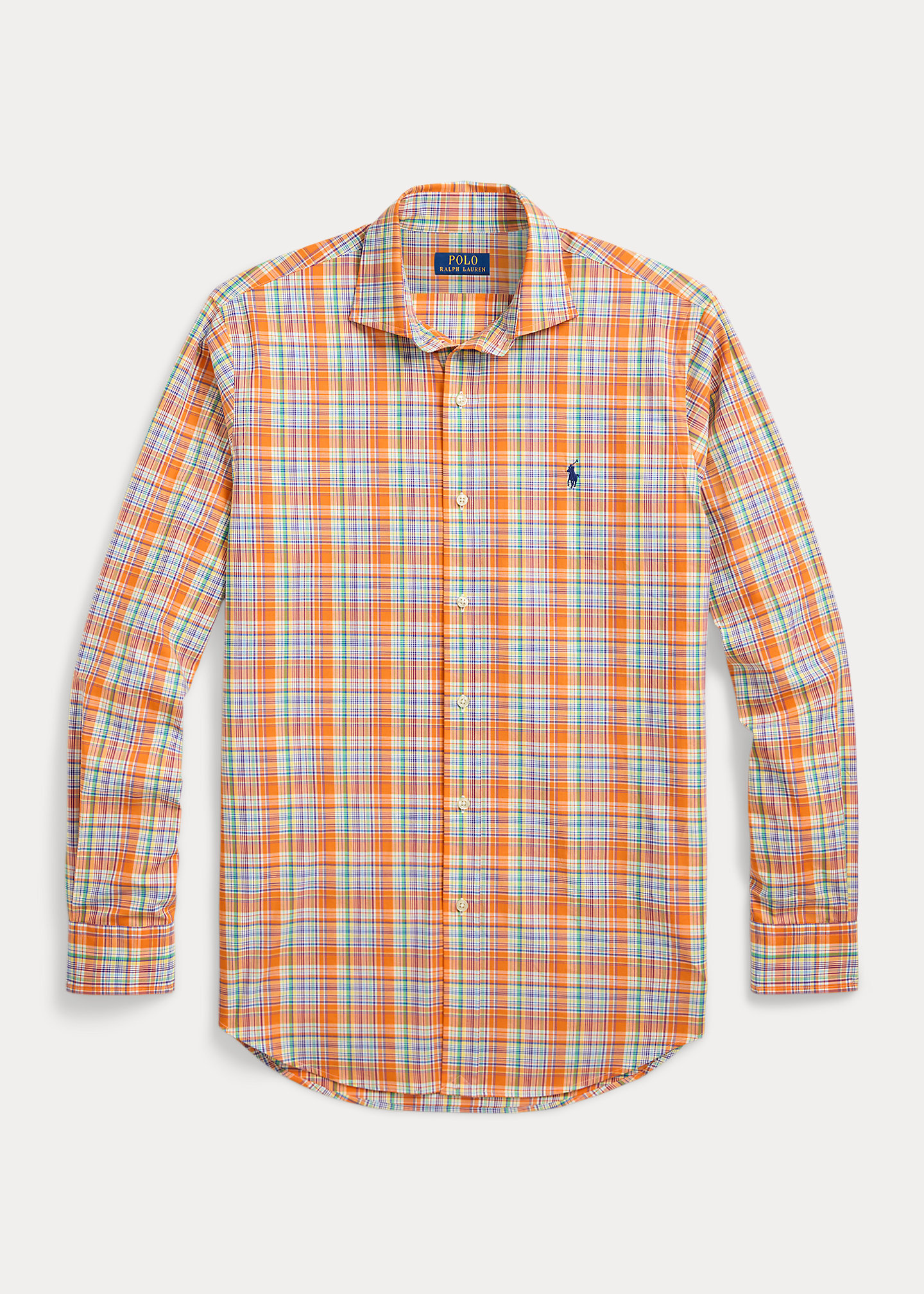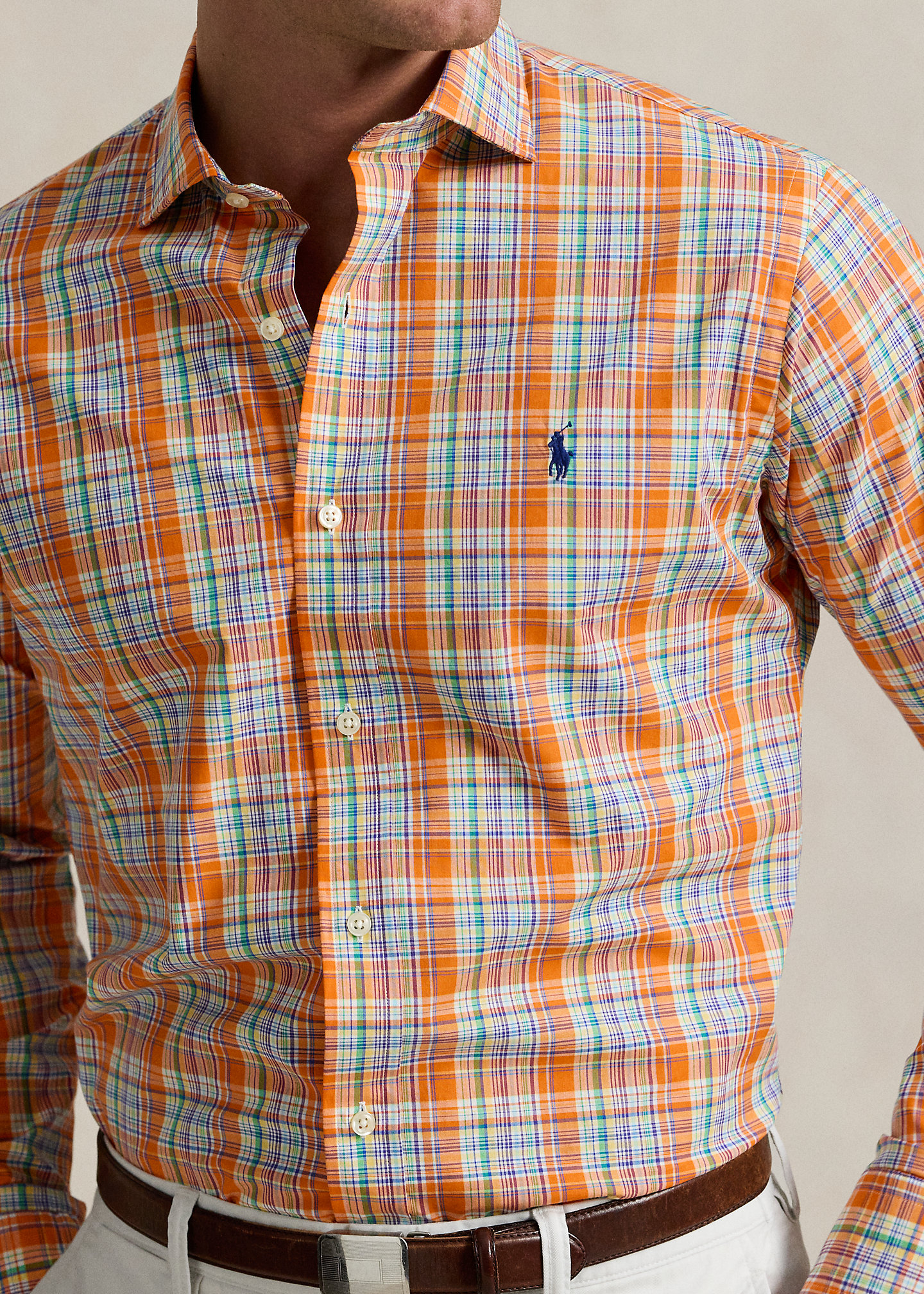 - Medium-spread collar. Buttoned placket. Long sleeves with buttoned barrel cuffs.