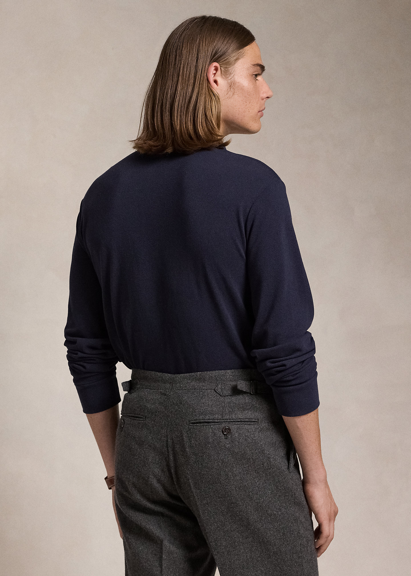- Ribbed Polo collar. Two-button placket. Long sleeves with ribbed cuffs.