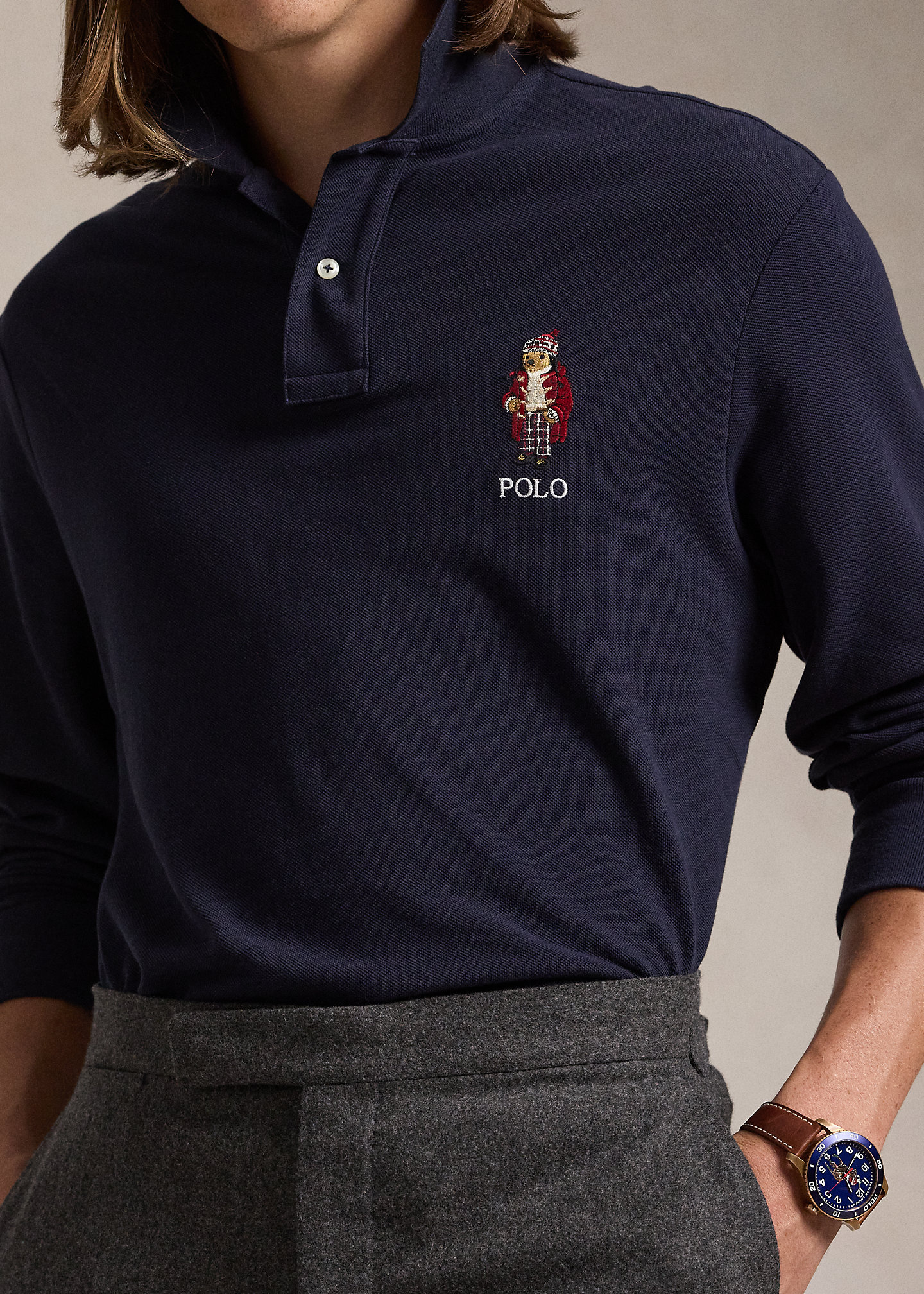 - Polo Bear and “Polo” embroidered at the left chest.