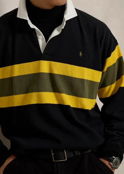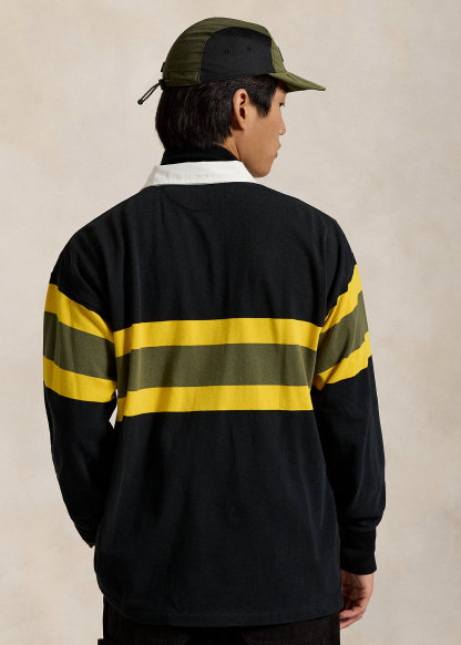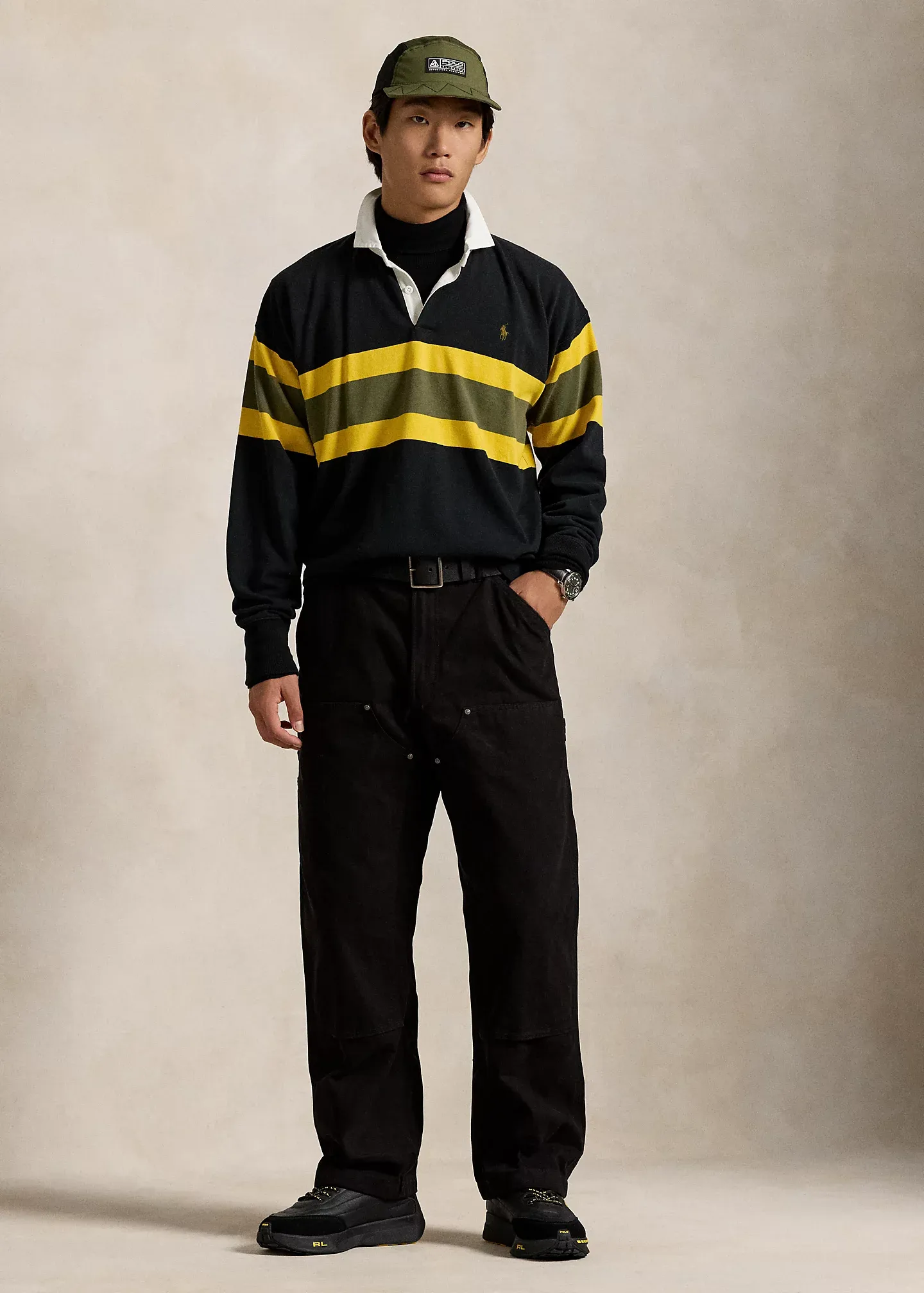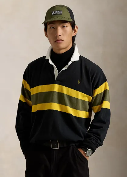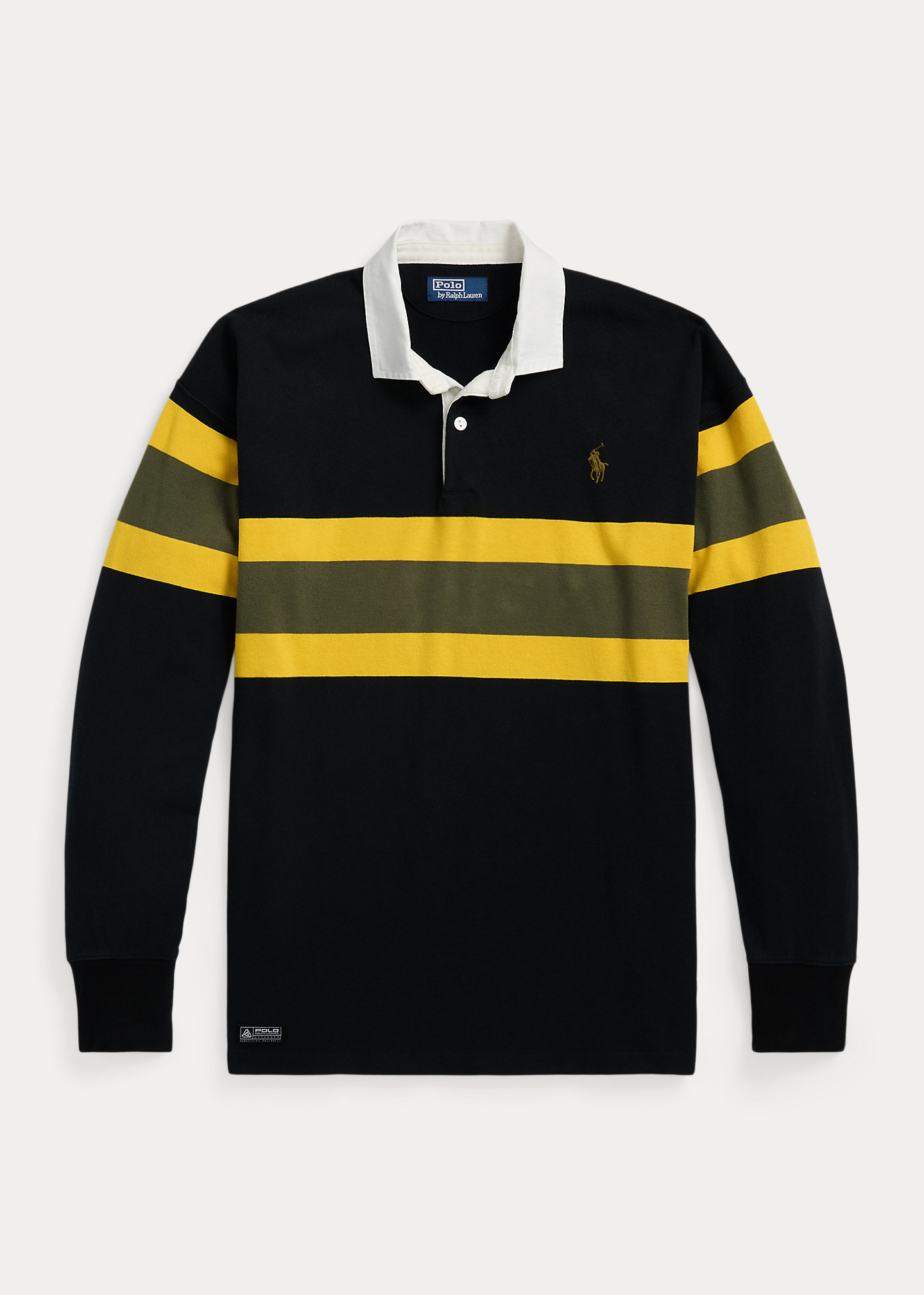 - Twill rugby collar. Three-button placket. Rubber buttons. Long sleeves with ribbed cuffs.
