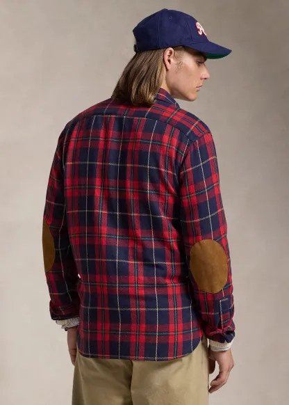 - Long sleeves with suede elbow patches. Buttoned barrel cuffs.