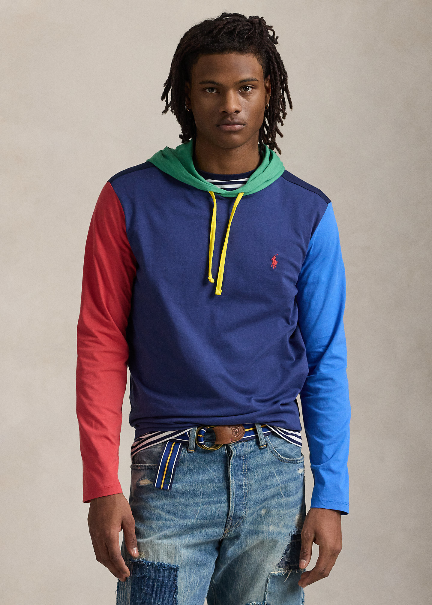 Color-Blocked Jersey Hooded T-Shirt