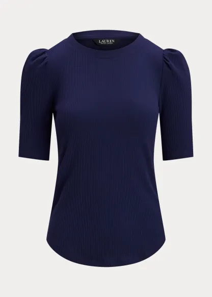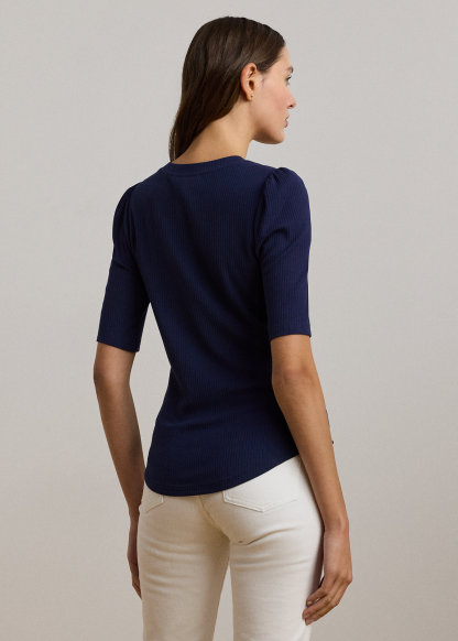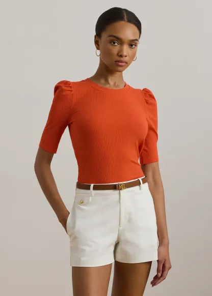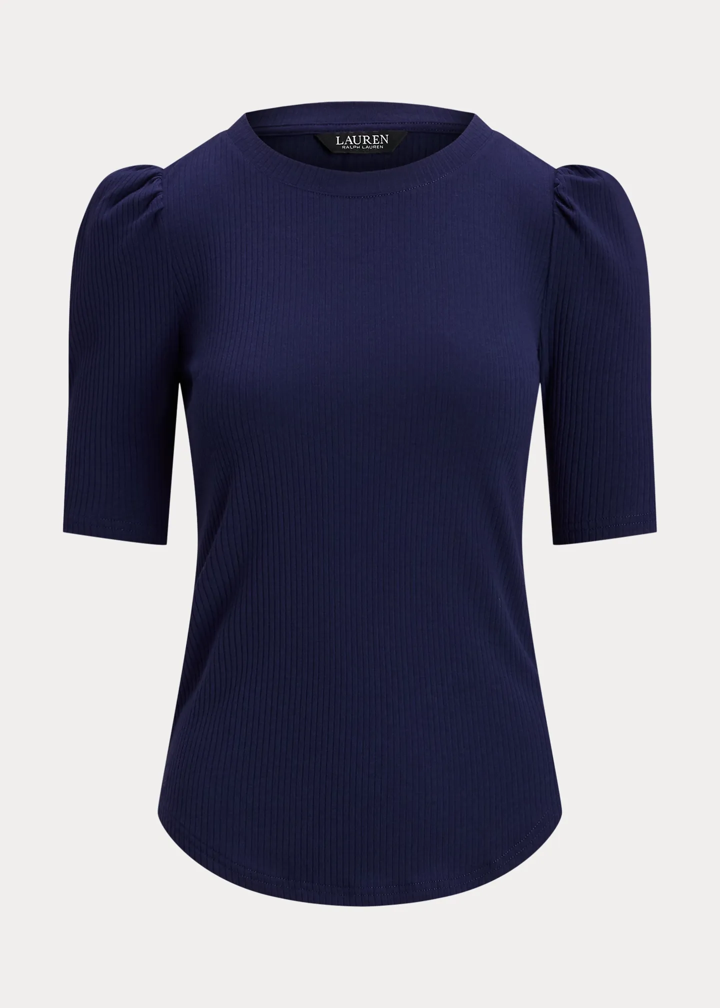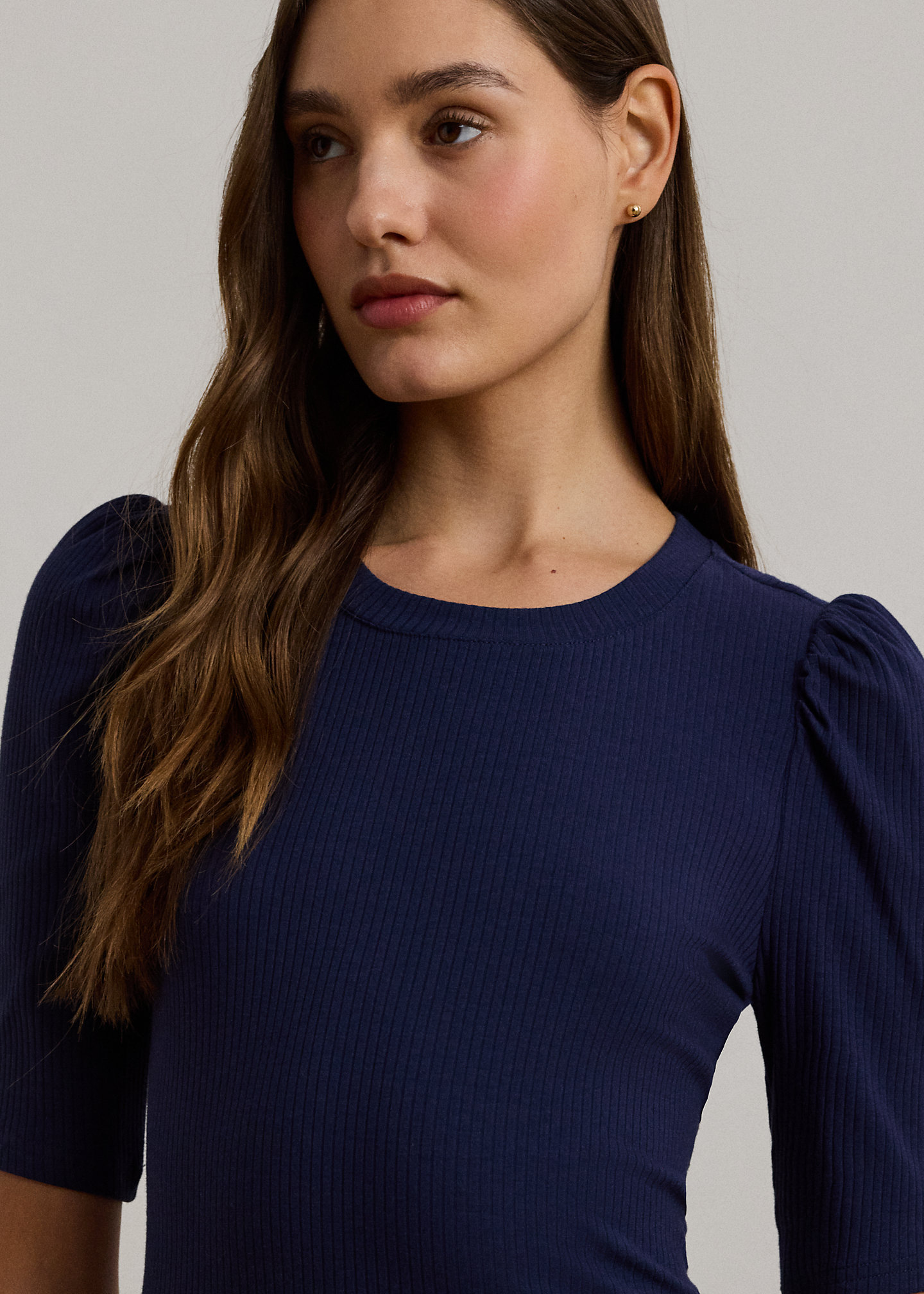 Cotton-Blend Rib-Knit Puff-Sleeve Tee