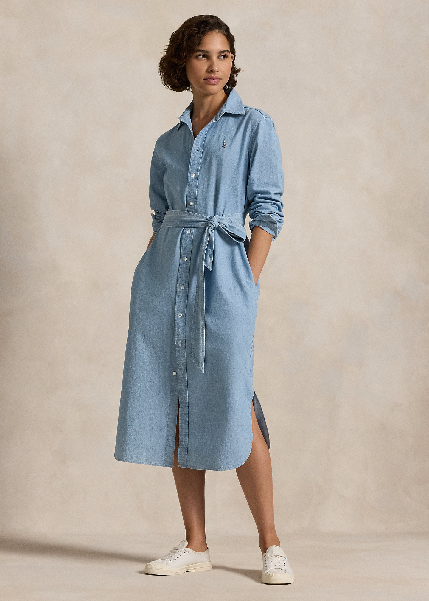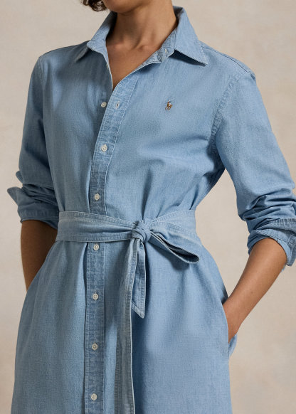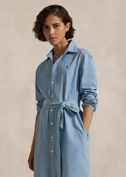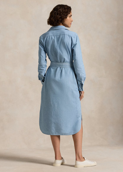 Cotton Chambray Belted Shirtdress