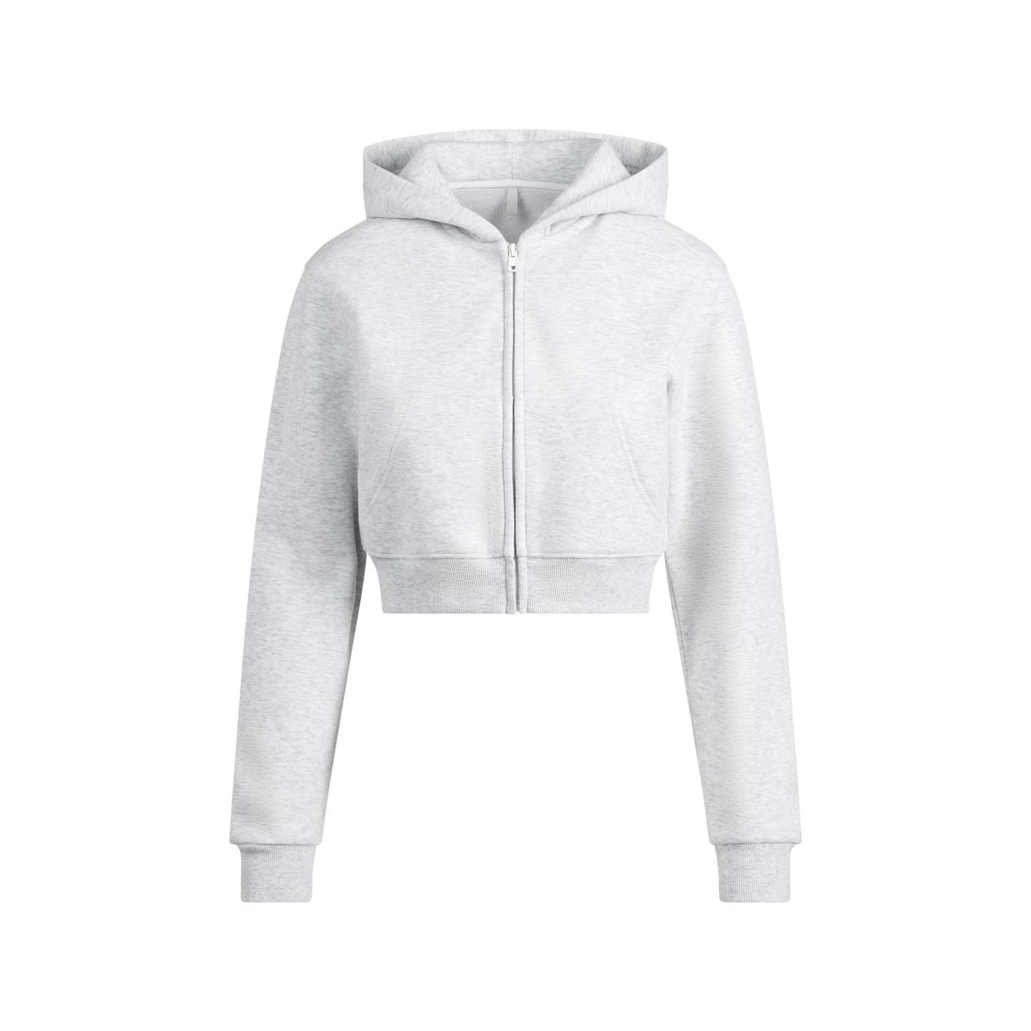 Cool, comfortable, stylish. This cropped zip-up hoodie is made with our signature, soft fleece and features an embossed logo on the left sleeve above the cuff. Complete with a kangaroo pocket and ribbed details on the cuff and hem. Fits true to size.