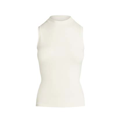 Everyday comfort, effortless style. Made with our signature, always flattering Cotton Jersey, this body-hugging mock neck tank is the layer you’ve been longing for. Fits true to size.