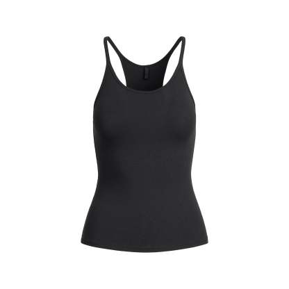 - Scoop neckline, Racerback design, Fits tight to body, Standard length