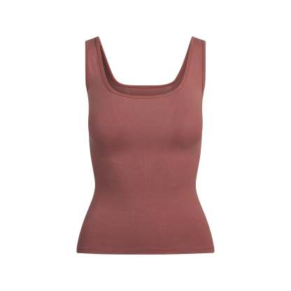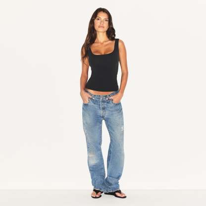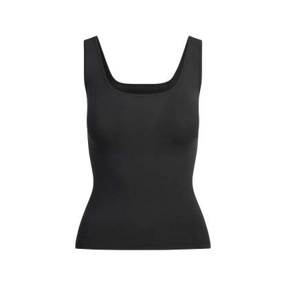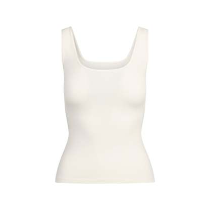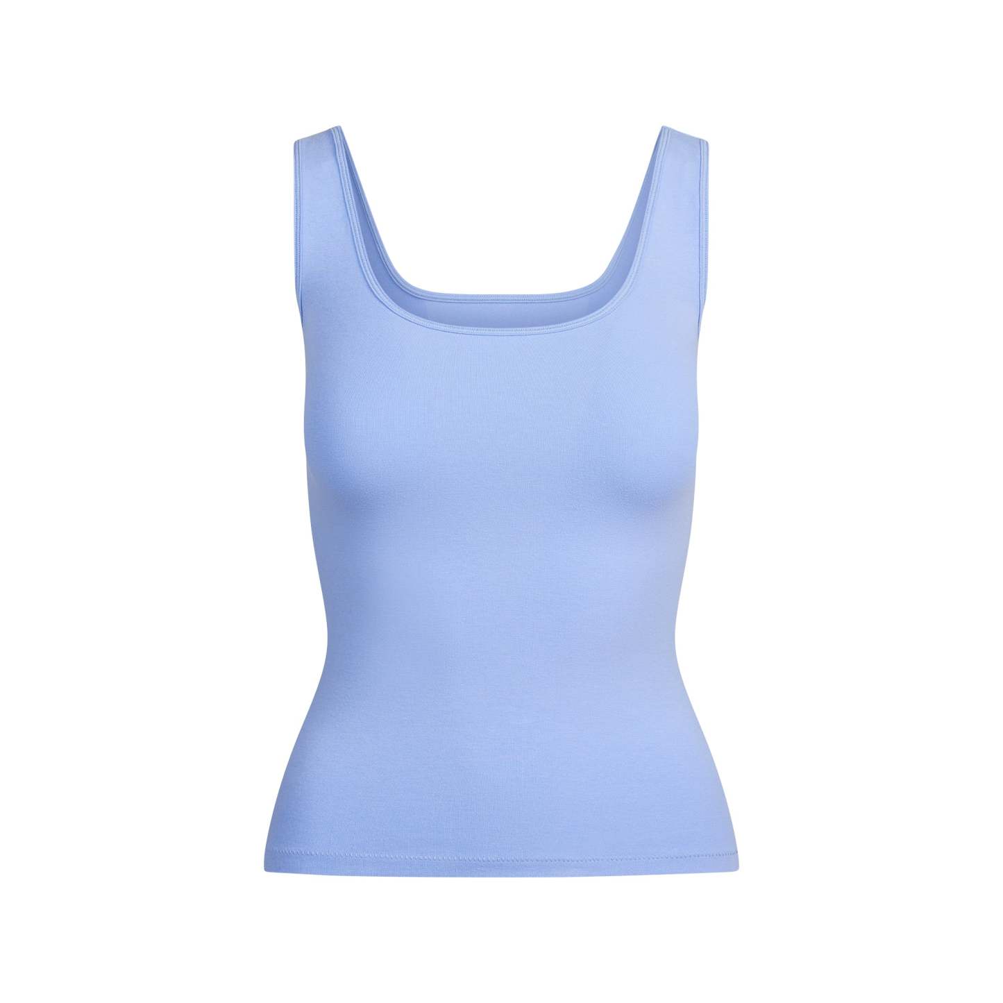 - Lightweight cotton tank top, Flattering scoop front and back neckline, Standard length hits at hip