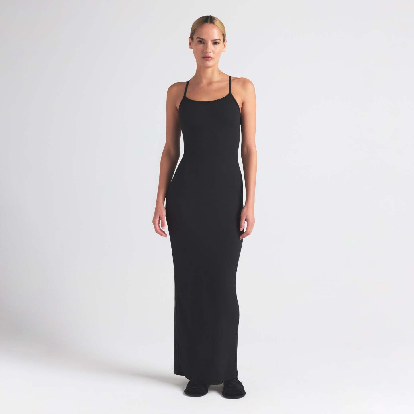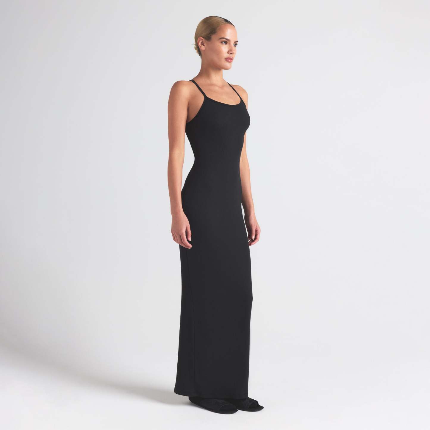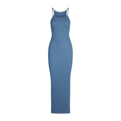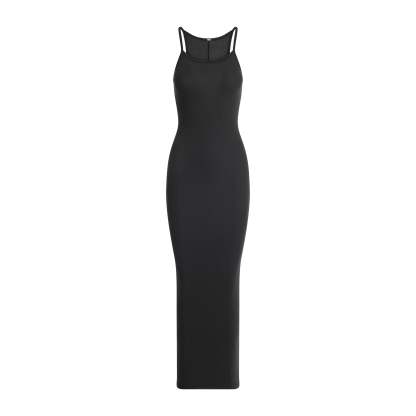 Cotton has never looked this chic. This versatile, fitted silhouette is made with our soft rib fabric that breathes and comfortably hugs your body. Features a chic scoop neck, a subtle racerback with a SKIMS logo label, and smooth edging along the straps and armholes. The full length hem has a center back slit for easy walking. Fits true to size.