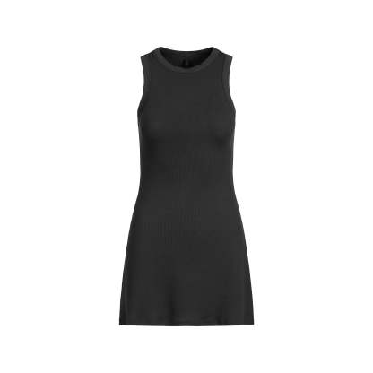 Short and chic. Designed in our ribbed breathable fabric, this A-line dress is made for stepping out or staying in. Features a crew neck and SKIMS logo label at the back neck. Fits true to size.