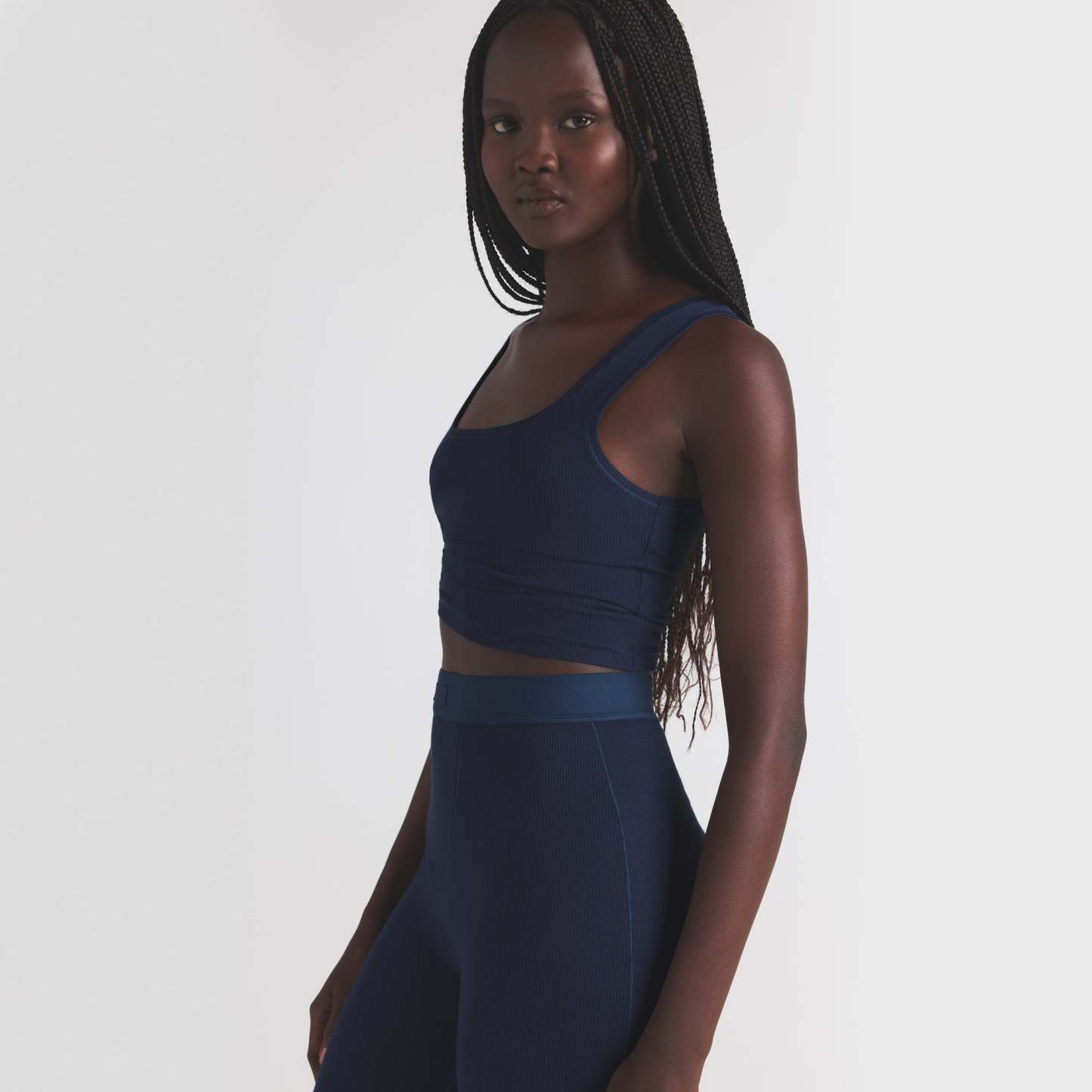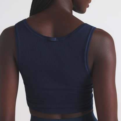 Everyone agrees – this tank is 10/10. This classic style is made with our iconic, breathable ribbed cotton that stretches to your curves for an all-day comfortable, flattering fit. Features a chic scoop neck and a slightly cropped length. Fits true to size. For a longer length, check out our Cotton Rib Long Tank.