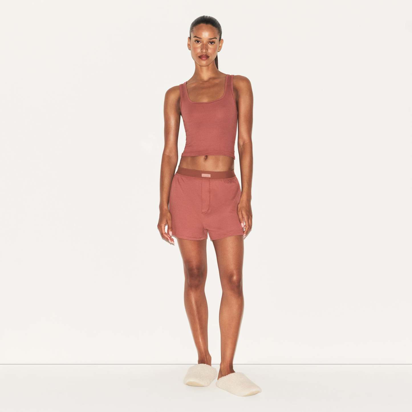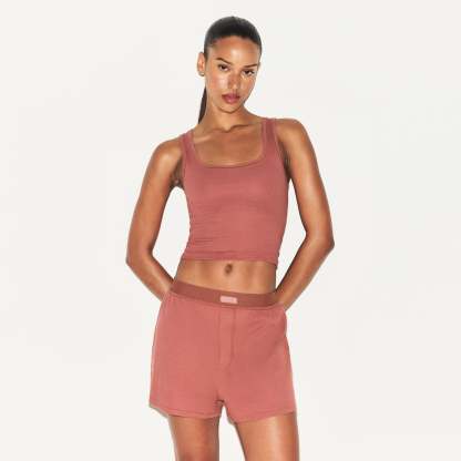 Everyone agrees – this tank is 10/10. This classic style is made with our iconic, breathable ribbed cotton that stretches to your curves for an all-day comfortable, flattering fit. Features a chic scoop neck and a slightly cropped length. Fits true to size. For a longer length, check out our Cotton Rib Long Tank.
