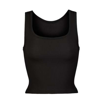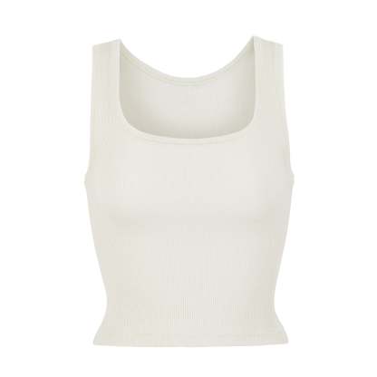 Everyone agrees – this tank is 10/10. This classic style is made with our iconic, breathable ribbed cotton that stretches to your curves for an all-day comfortable, flattering fit. Features a chic scoop neck and a slightly cropped length.