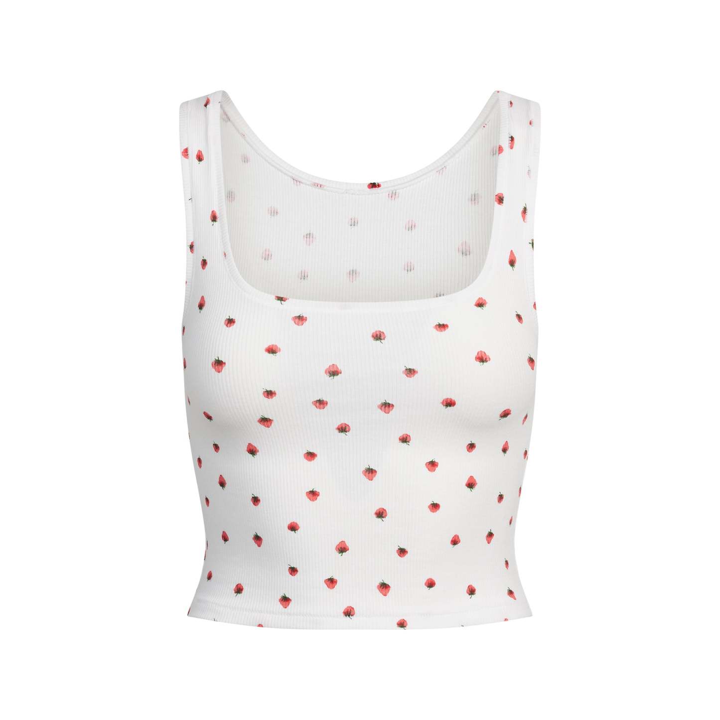 - Fitted tank, Scoop neckline, Slightly cropped fit, Hits at natural waist
