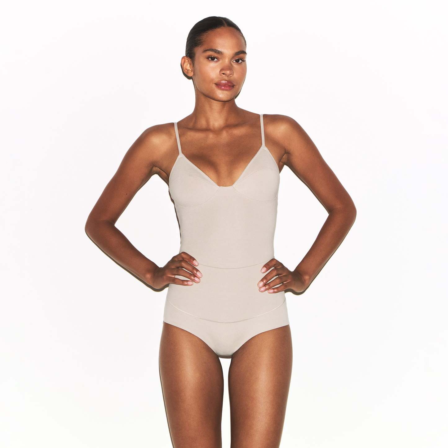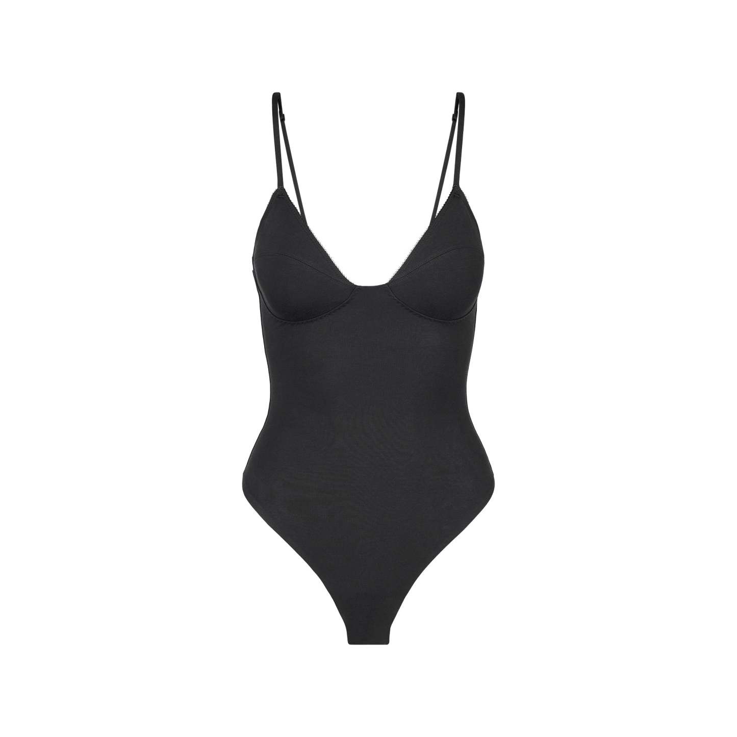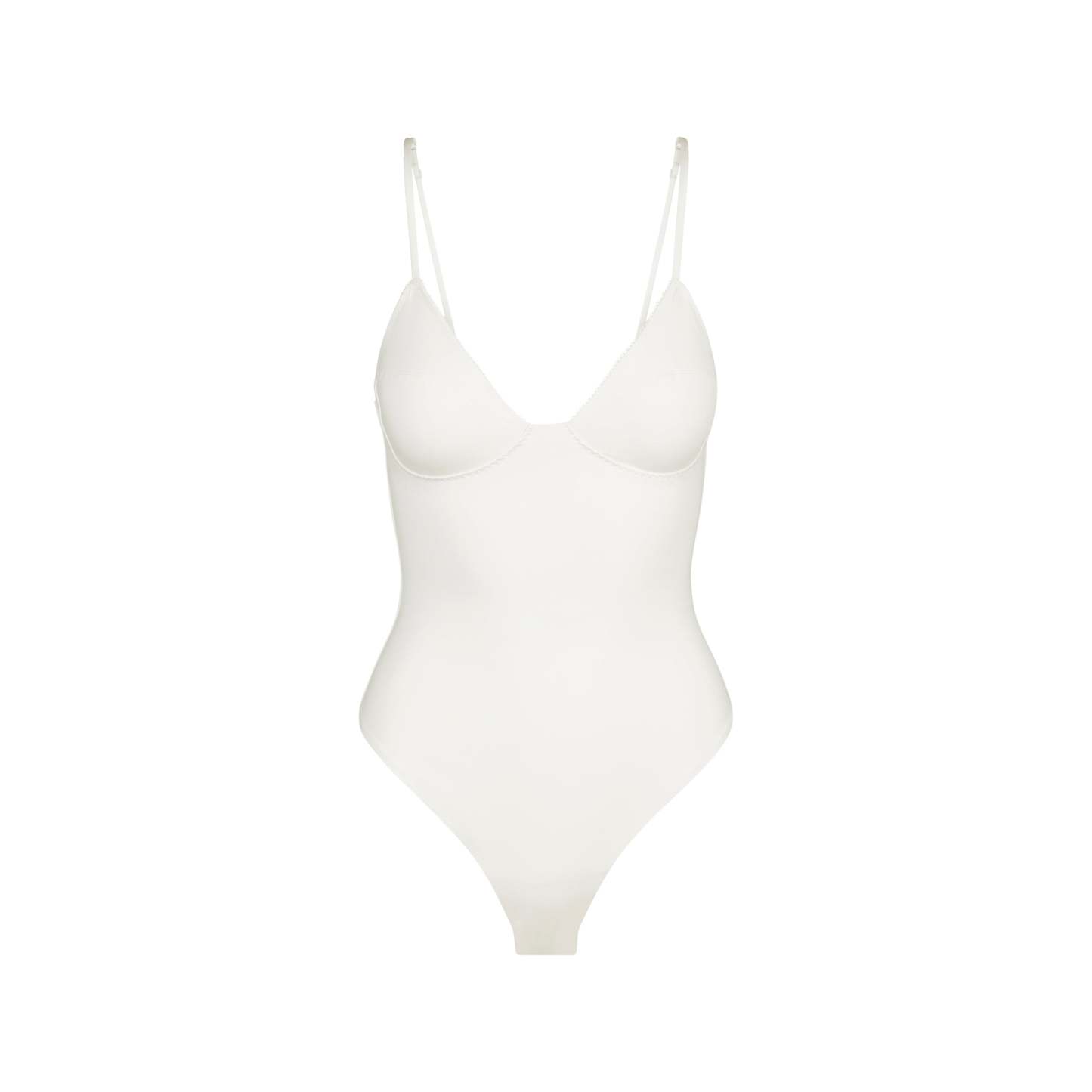 One-and-done classic. This plunge thong bodysuit is designed in our luxe cotton fabric and features unlined cups, light compression, and a supportive underwire. Elevated with picot elastic trim, this solution brings retro allure to your summer wardrobe. Complete with snaps at the 100% cotton gusset and adjustable straps. Fits true to size.