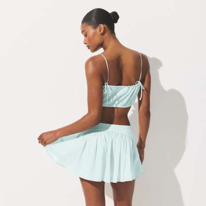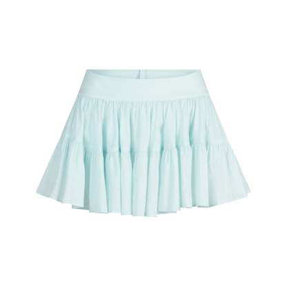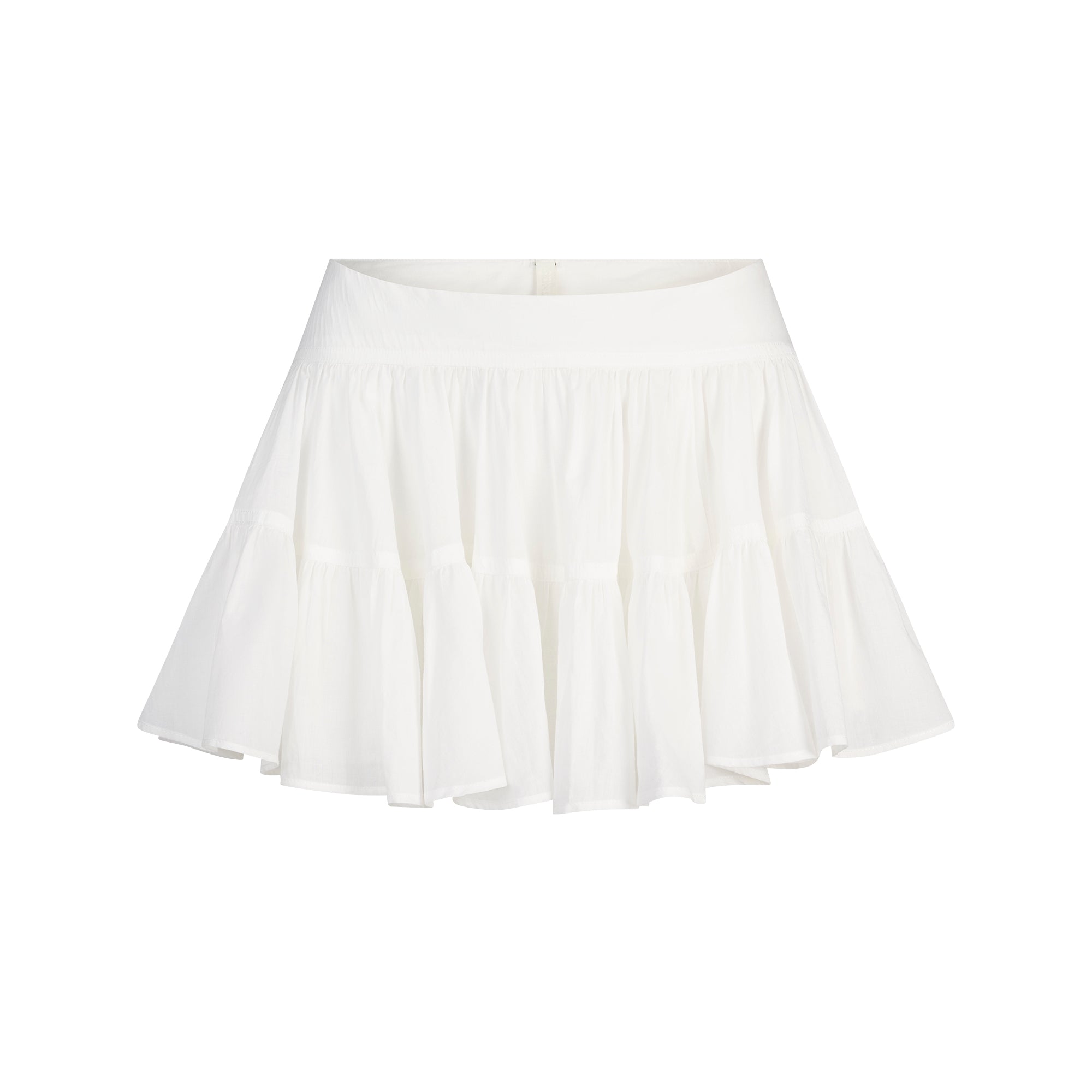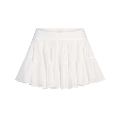 Flowy and feminine. Designed in our breathable woven Cotton Voile fabric, this tiered mini skirt features an interior cotton lining and zipper with a hook and eye closure at the side. Fits true to size.