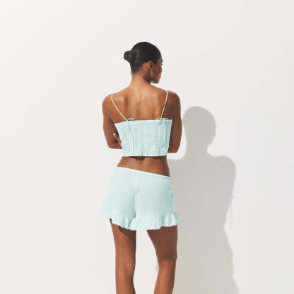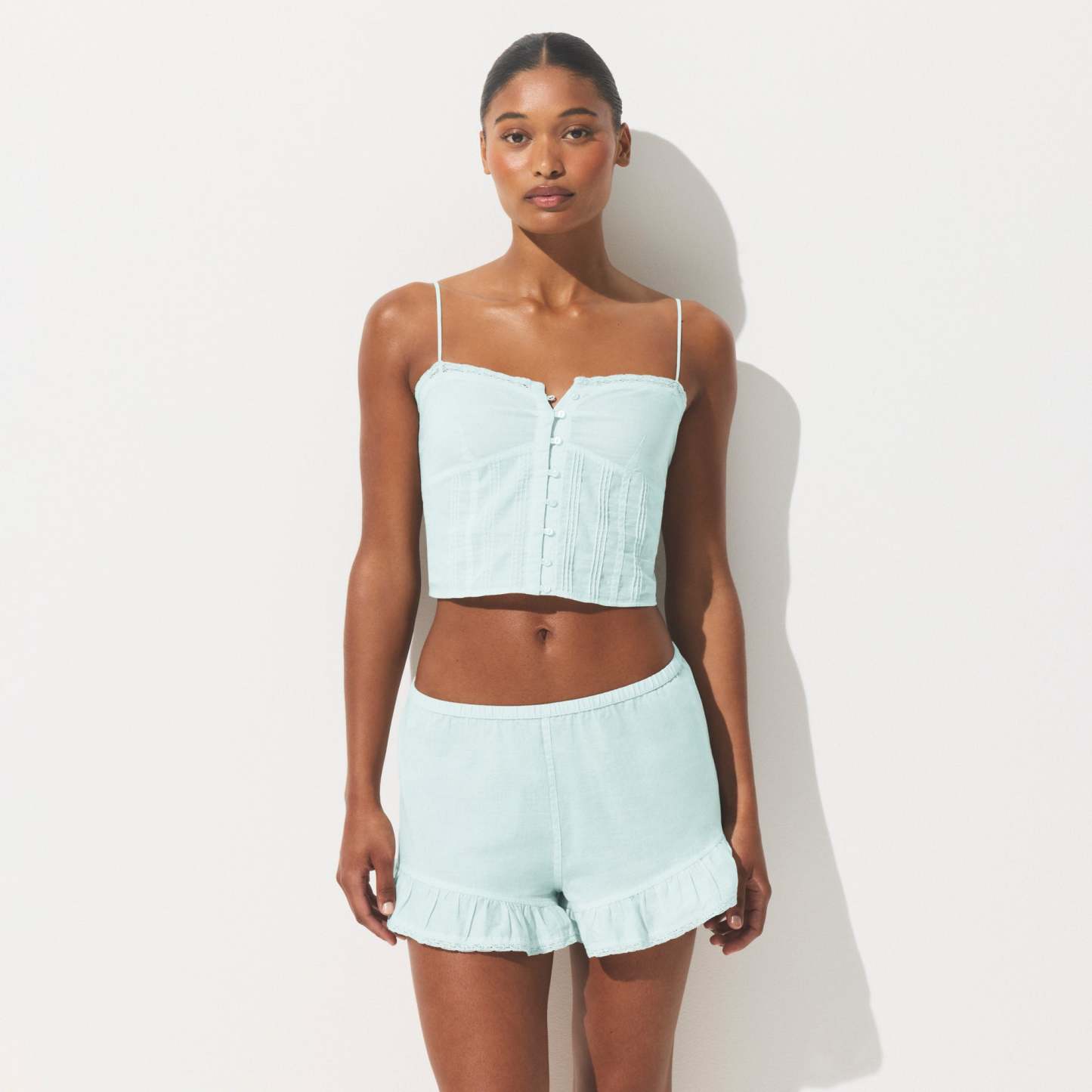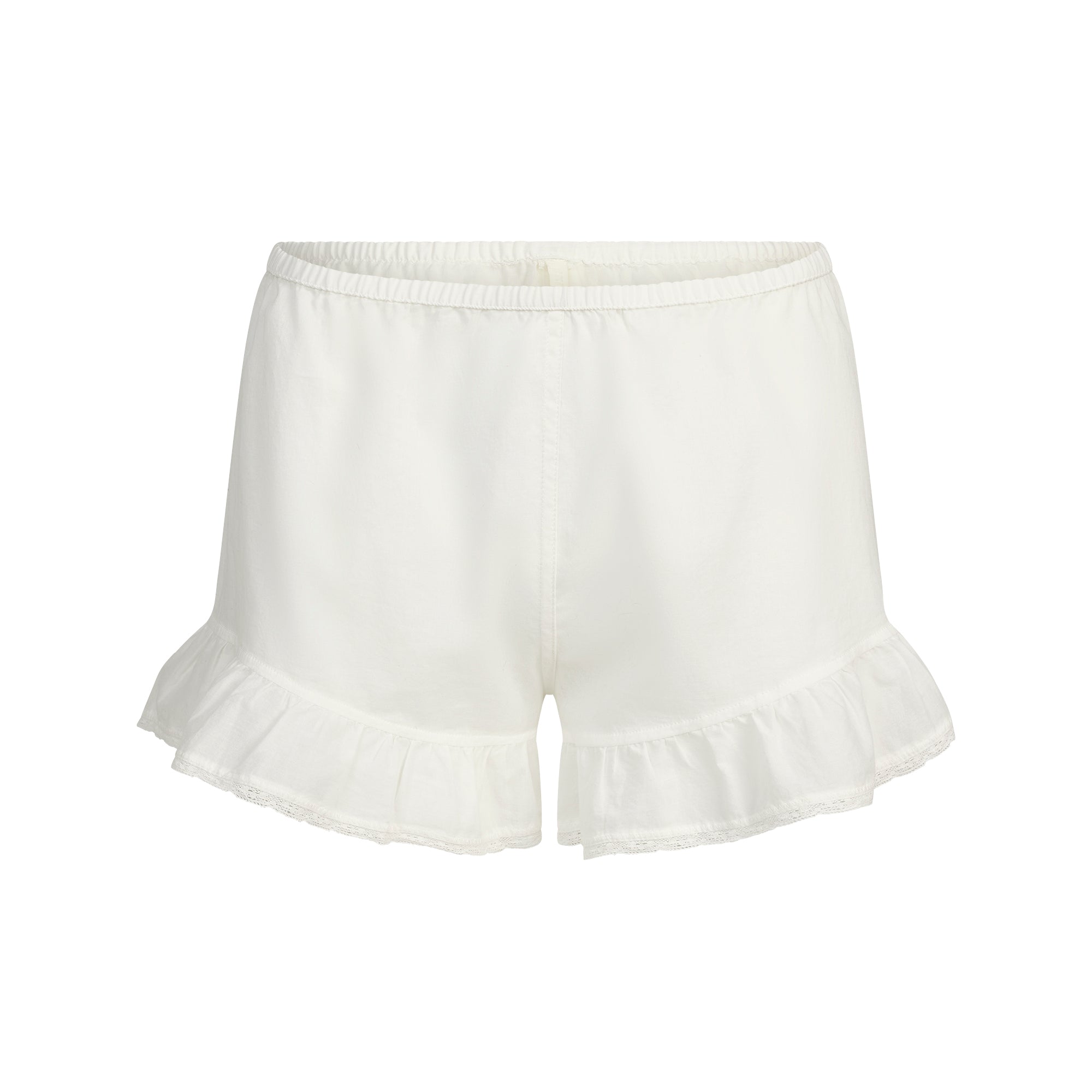 Airy cotton comfort. This semi-sheer Cotton Voile short features a thin waistband and ruffle hem detail for a flirty and feminine daytime look. Fits true to size.