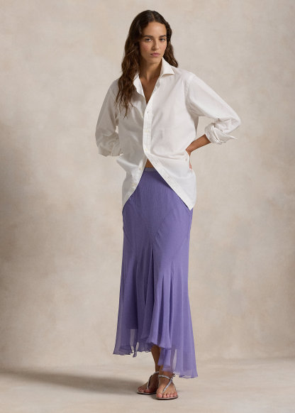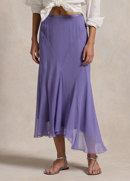 Crinkled Silk Paneled Skirt