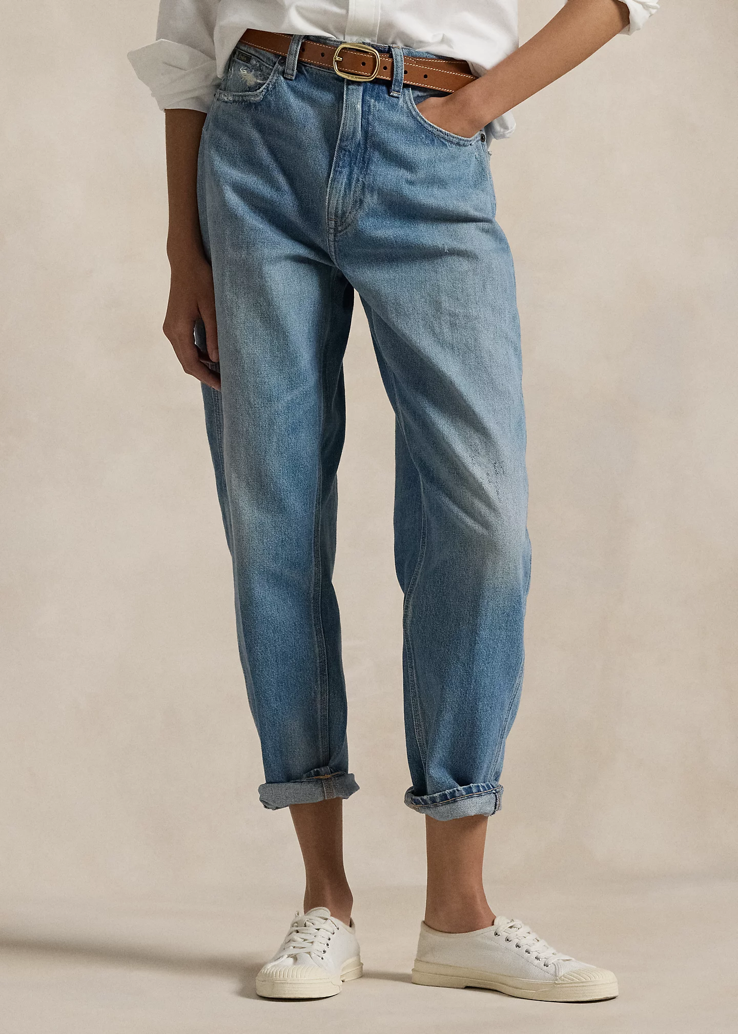 - Curved Tapered: Our curved tapered jean has a high-rise waist with a curved leg that is relaxed at the hip and tapers from the thigh. Intended to hit above the ankle.