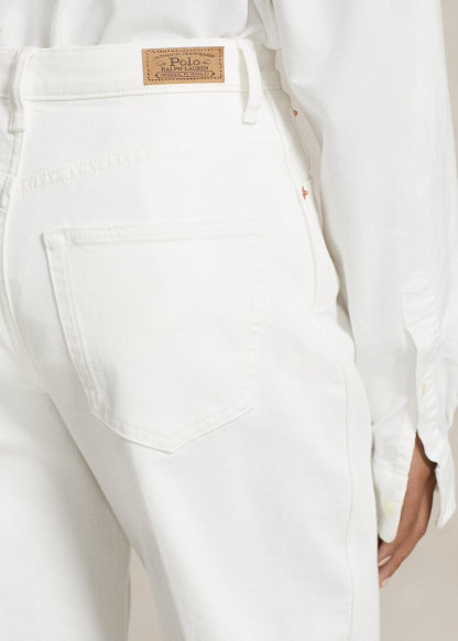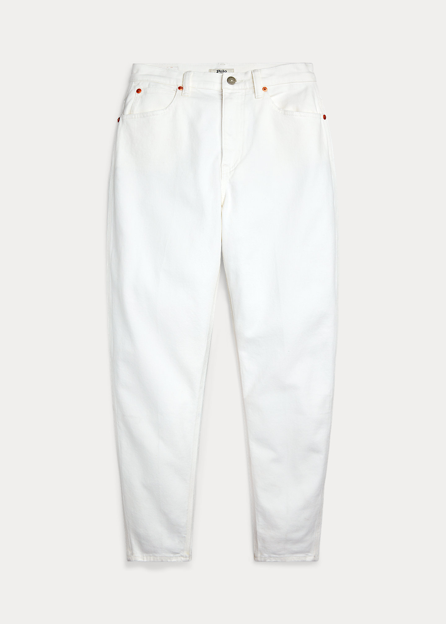 - Belt loops. Zip fly with a signature buttoned closure. Five-pocket styling with signature “P.R.L. 67”–engraved metal rivets.