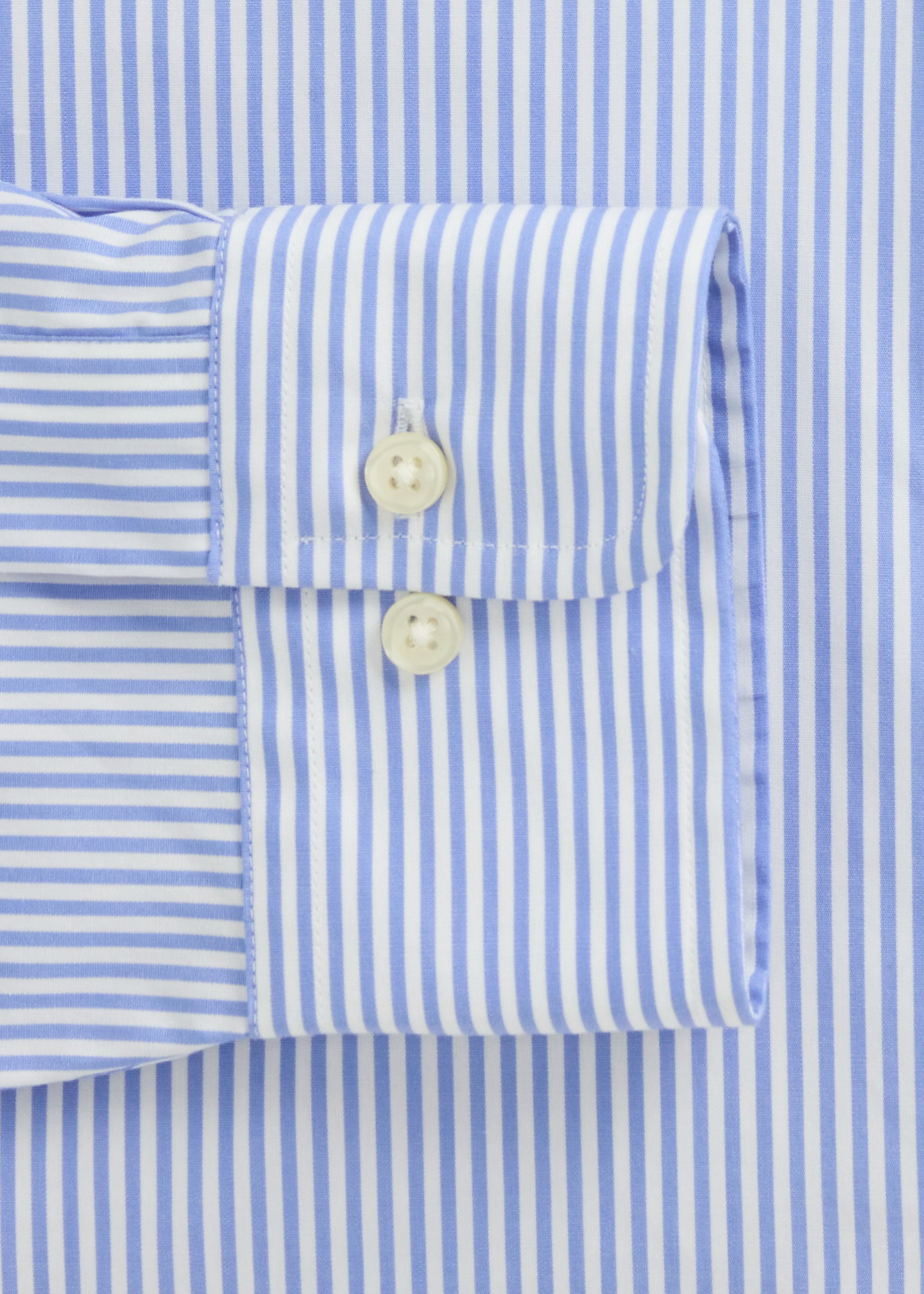 - Extended button-down point collar. Buttoned placket. Last buttonhole is stitched horizontally for a superior hold.