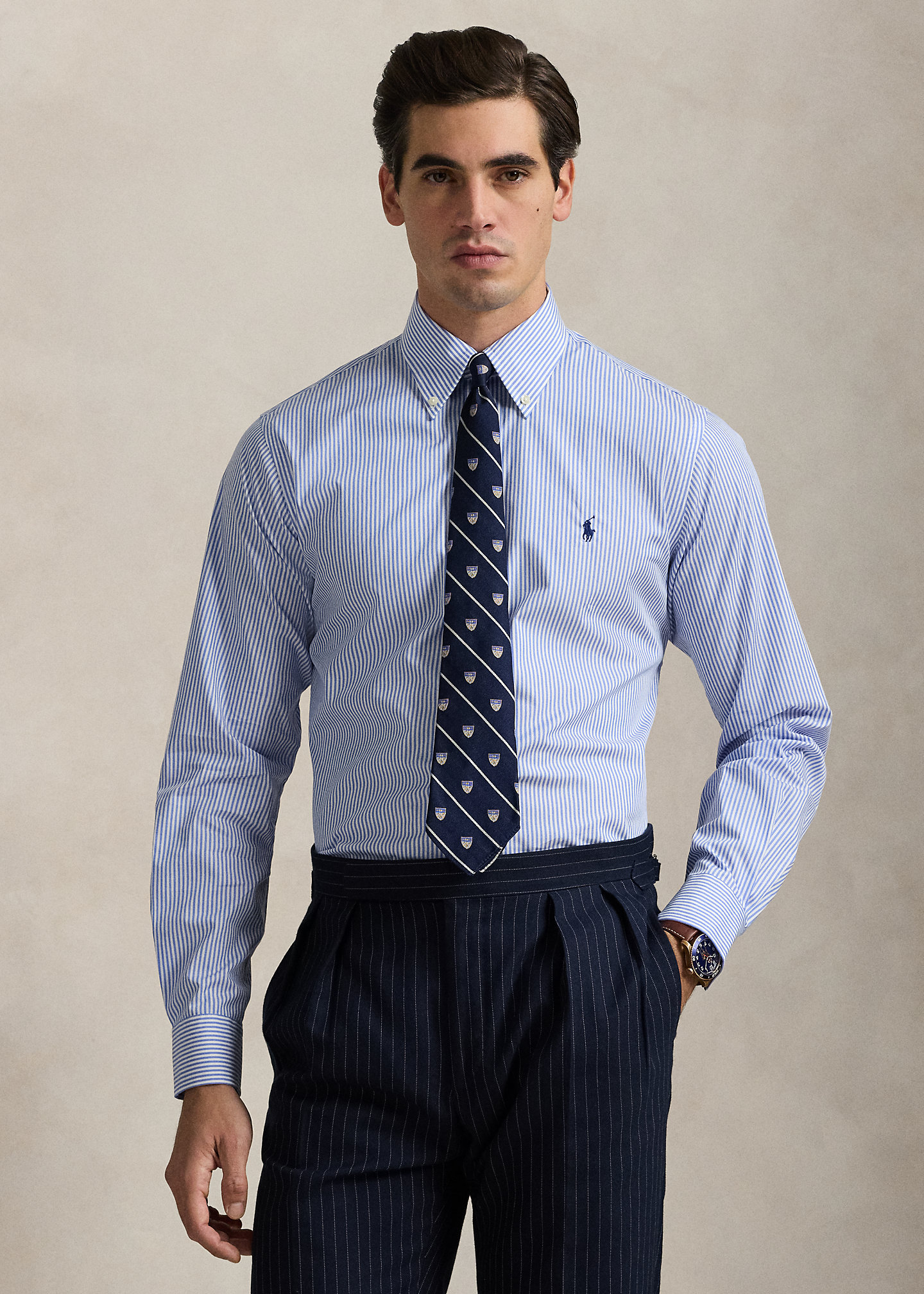 - Custom Fit: a trim silhouette in between Polo's Classic Fit and Slim Fit. Tailored through the waist.