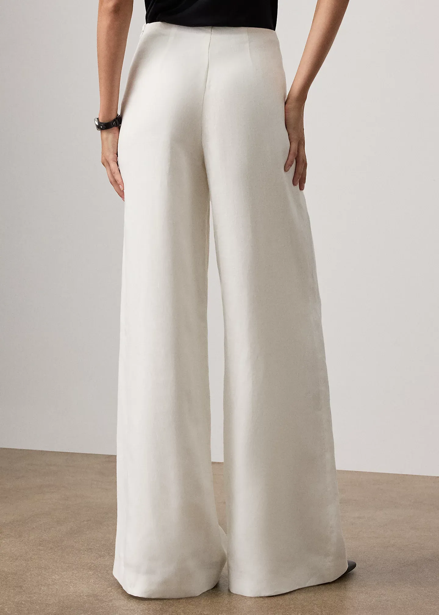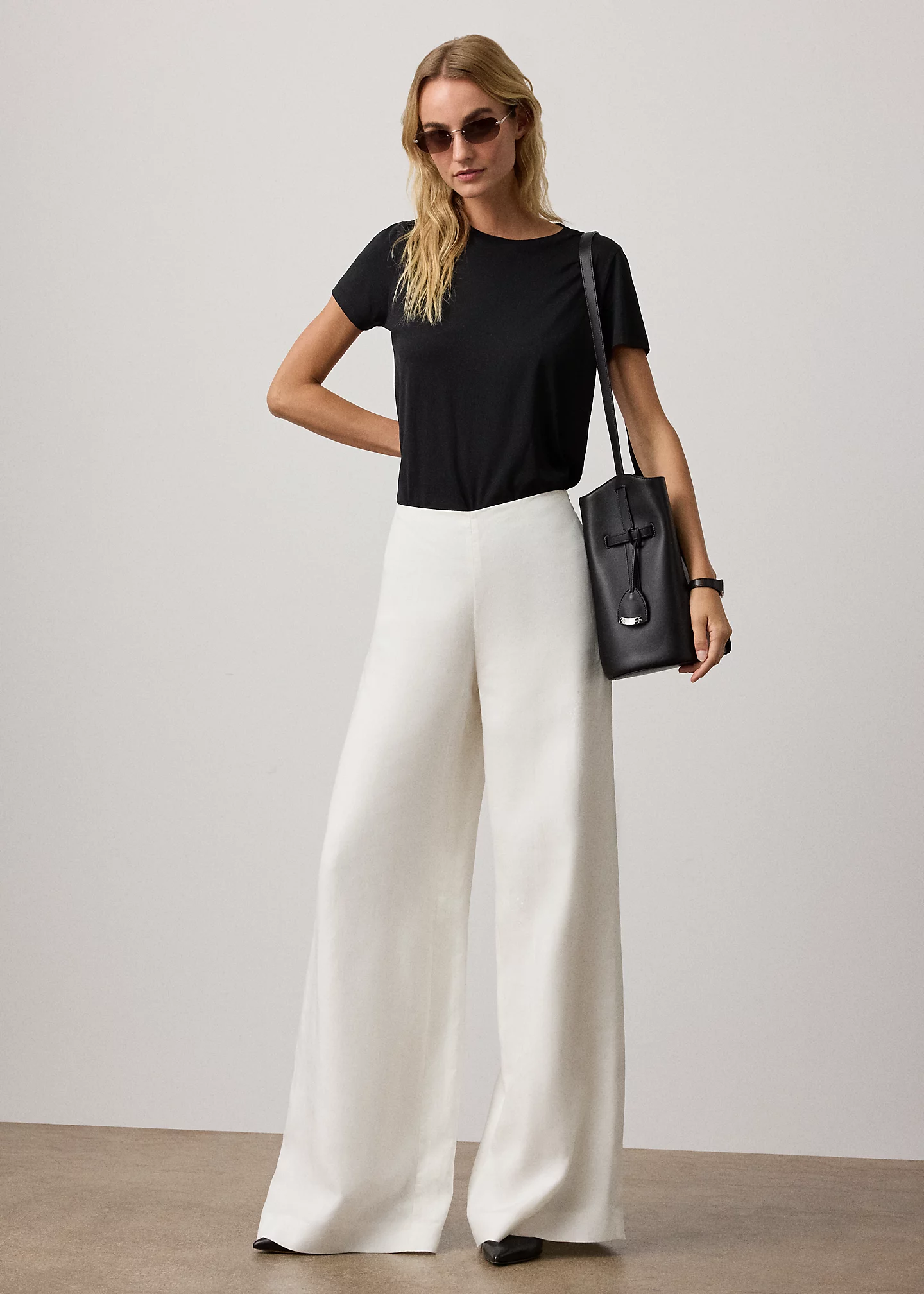 High rise. Wide-leg silhouette. Intended to hit at the floor.
