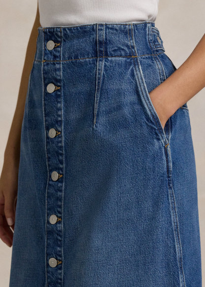 - Mid-rise. A-line silhouette. Intended to hit at the upper calf.