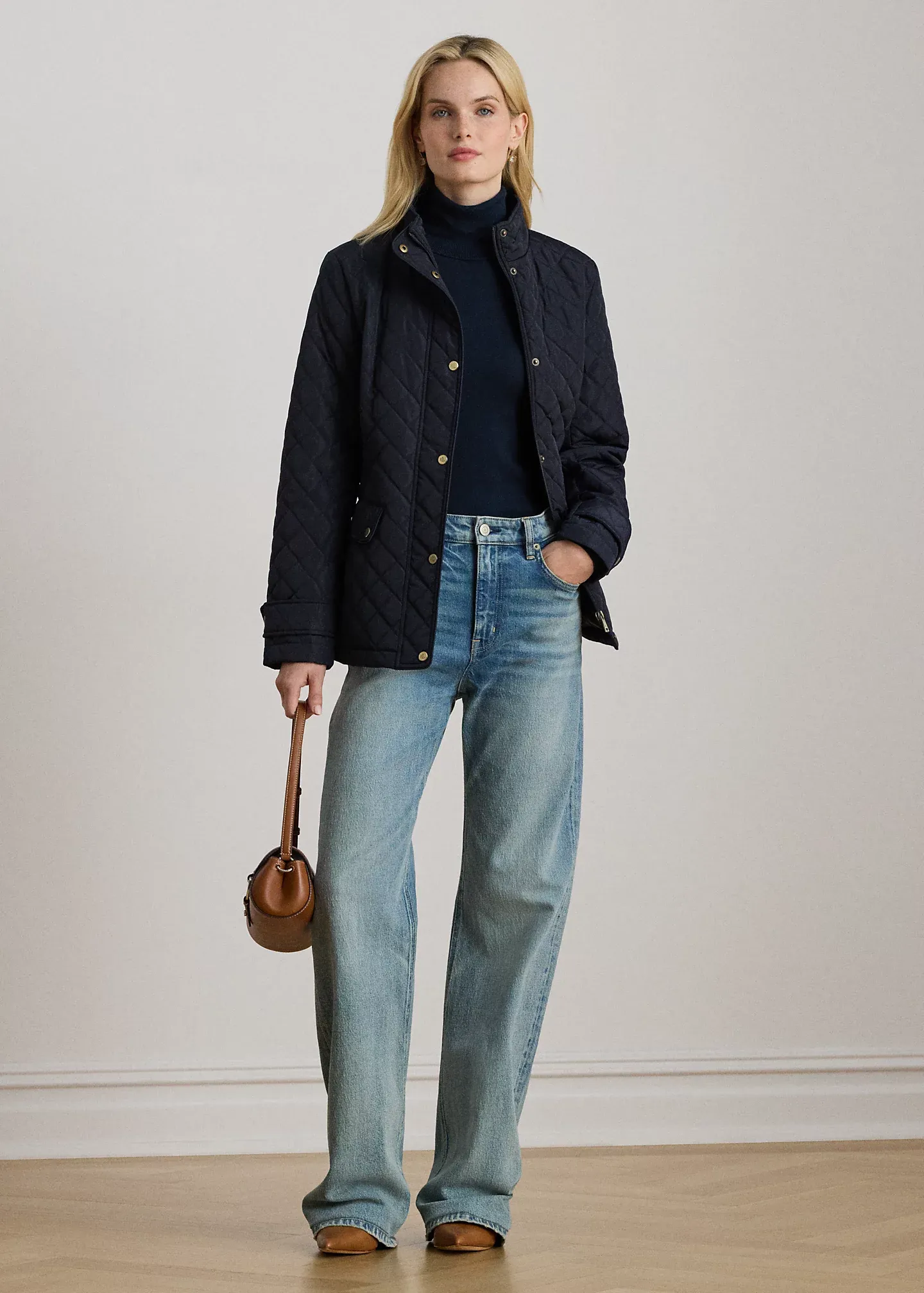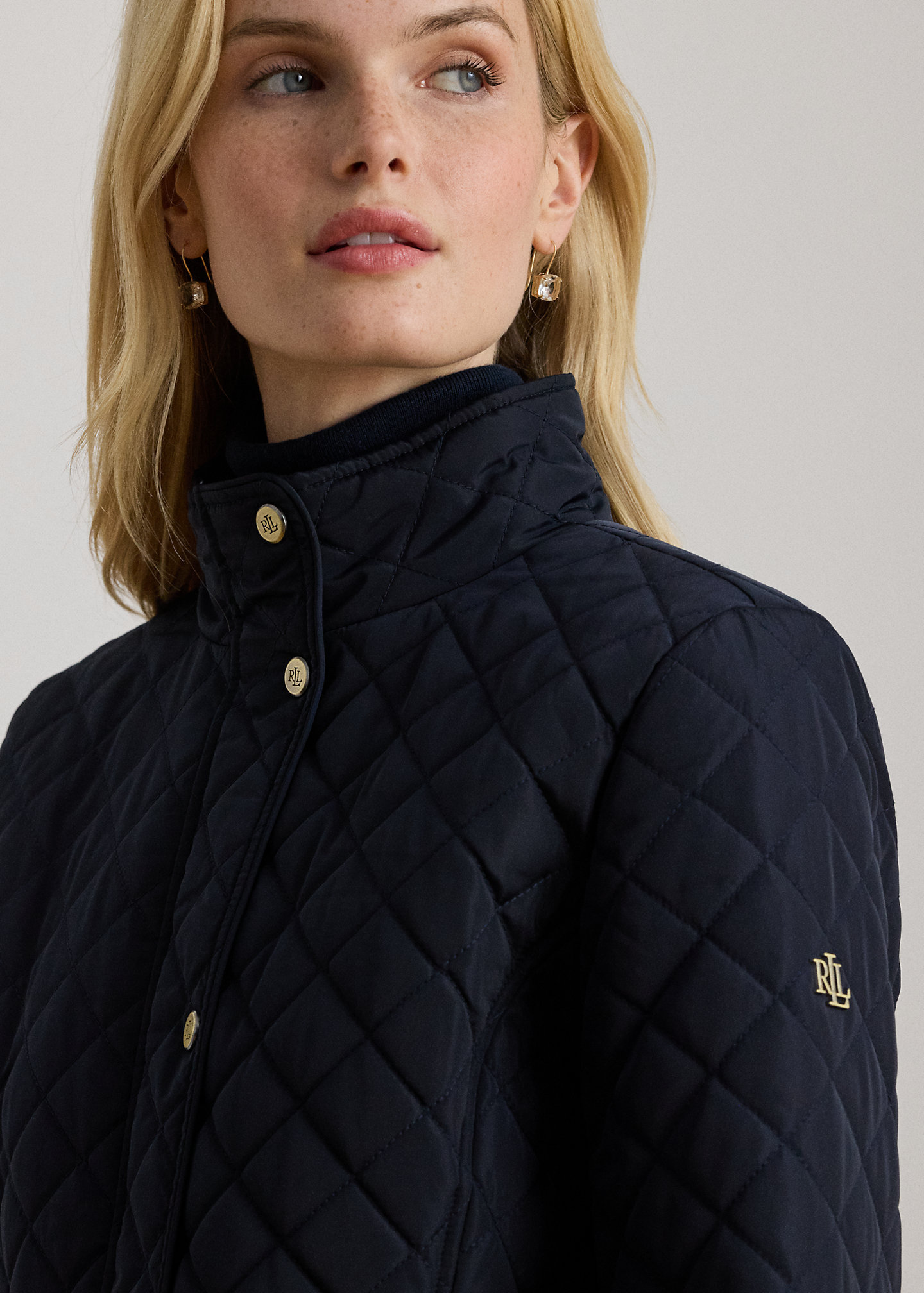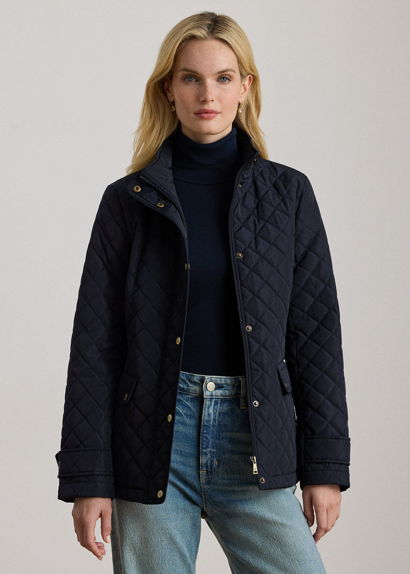 Diamond-Quilted Mockneck Jacket