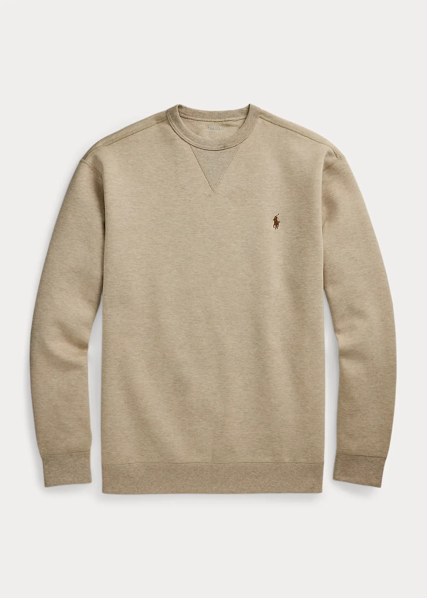 - Crewneck with a ribbed V-inset.