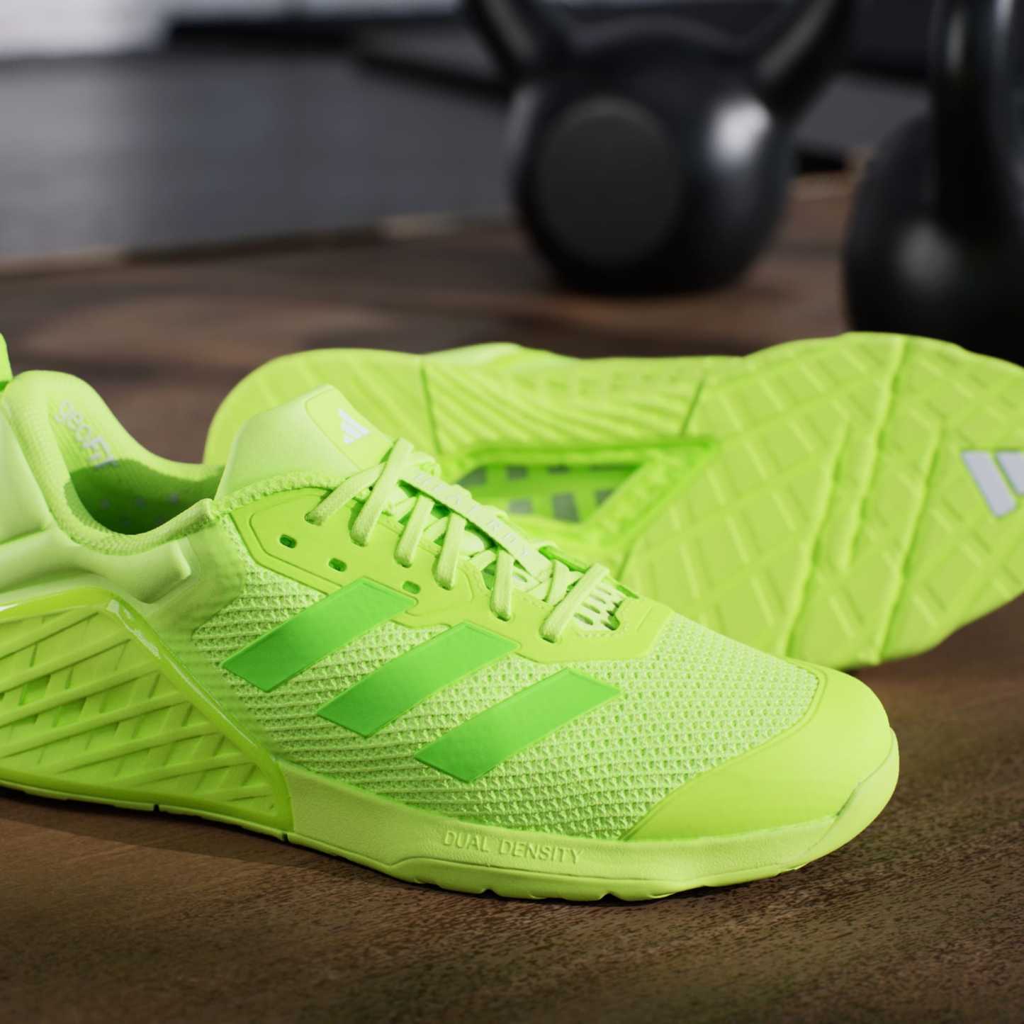 Whether lifting, pushing or pulling, Dropset 3 trainers provide the stable support needed for strength training. A dual-density midsole keeps feet cushioned through intense reps, while a TPU sidewall locks in the midfoot. adidas HEAT.RDY keeps feet cool even when the workout heats up. Wider than standard fit, these trainers comfortably contain any foot swell from exertion. This product features at least 20% recycled materials. By reusing materials that have already been created, we help to reduce waste and our reliance on finite resources and reduce the footprint of the products we make.