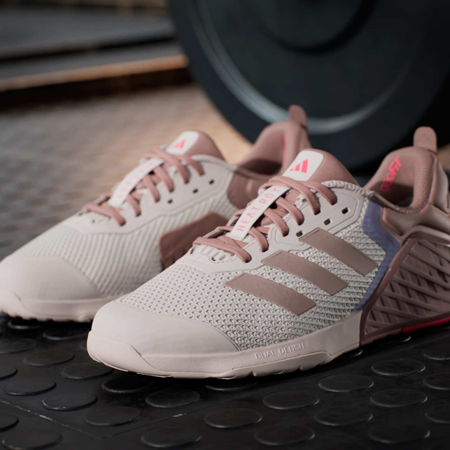 Whether the workout calls for power or endurance, these adidas shoes offer the support you need for strength training. A dual-density midsole keeps feet stable through heavy lifts, while remaining flexible enough for cardio. HEAT.RDY and a breathable upper work overtime to beat the heat, so you can focus on the reps. A wide fit accommodates swelling feet, and an Adiwear outsole grips the floor to drive performance. This product features at least 20% recycled materials. By reusing materials that have already been created, we help to reduce waste and our reliance on finite resources and reduce the footprint of the products we make.
