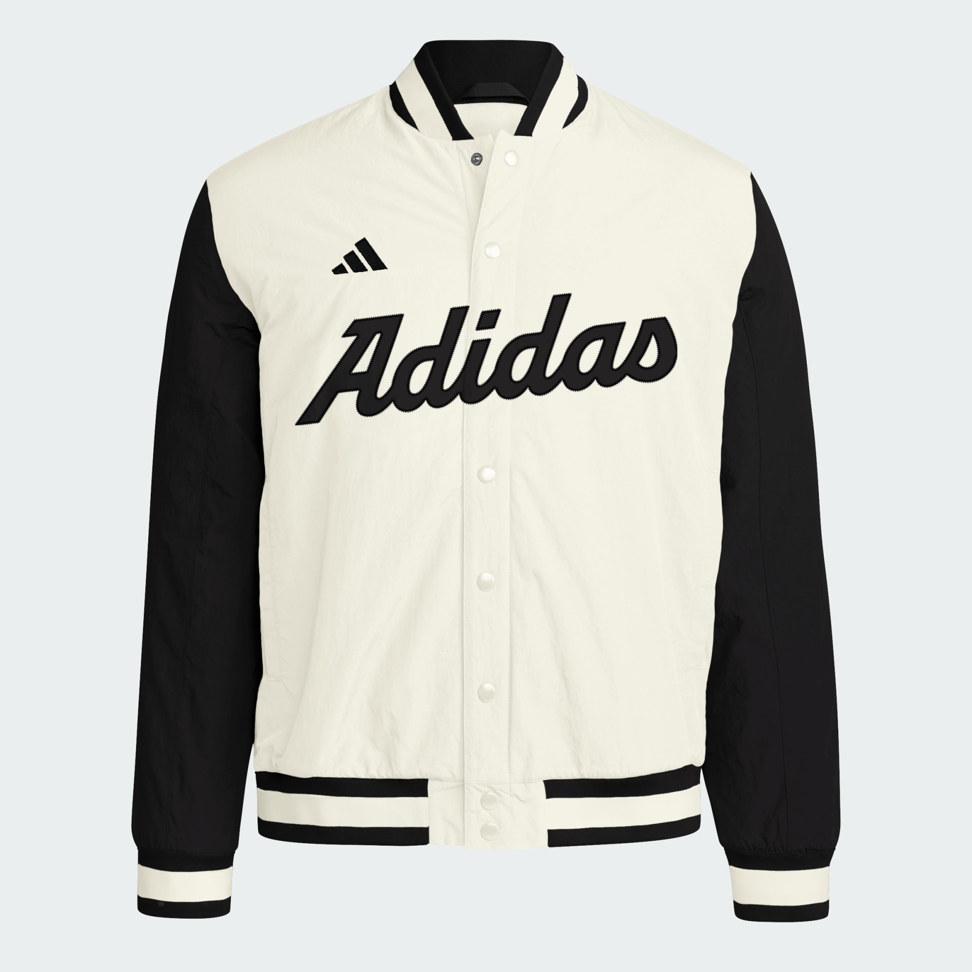 This classic-look baseball coaches jacket from adidas is made from plain weave fabric that feels smooth and comfortable. Classic details include ribbing on the collar and cuffs and a dropped hem that makes it the perfect partner for cheering on your team from the dugout. A stylized adidas graphic on the front signs off the look.
