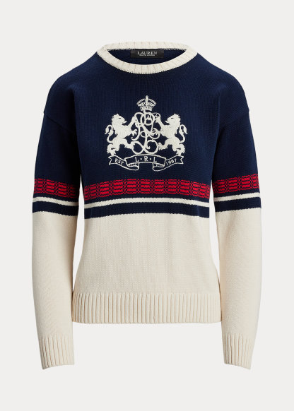 Embroidered-Crest Cotton Sweater