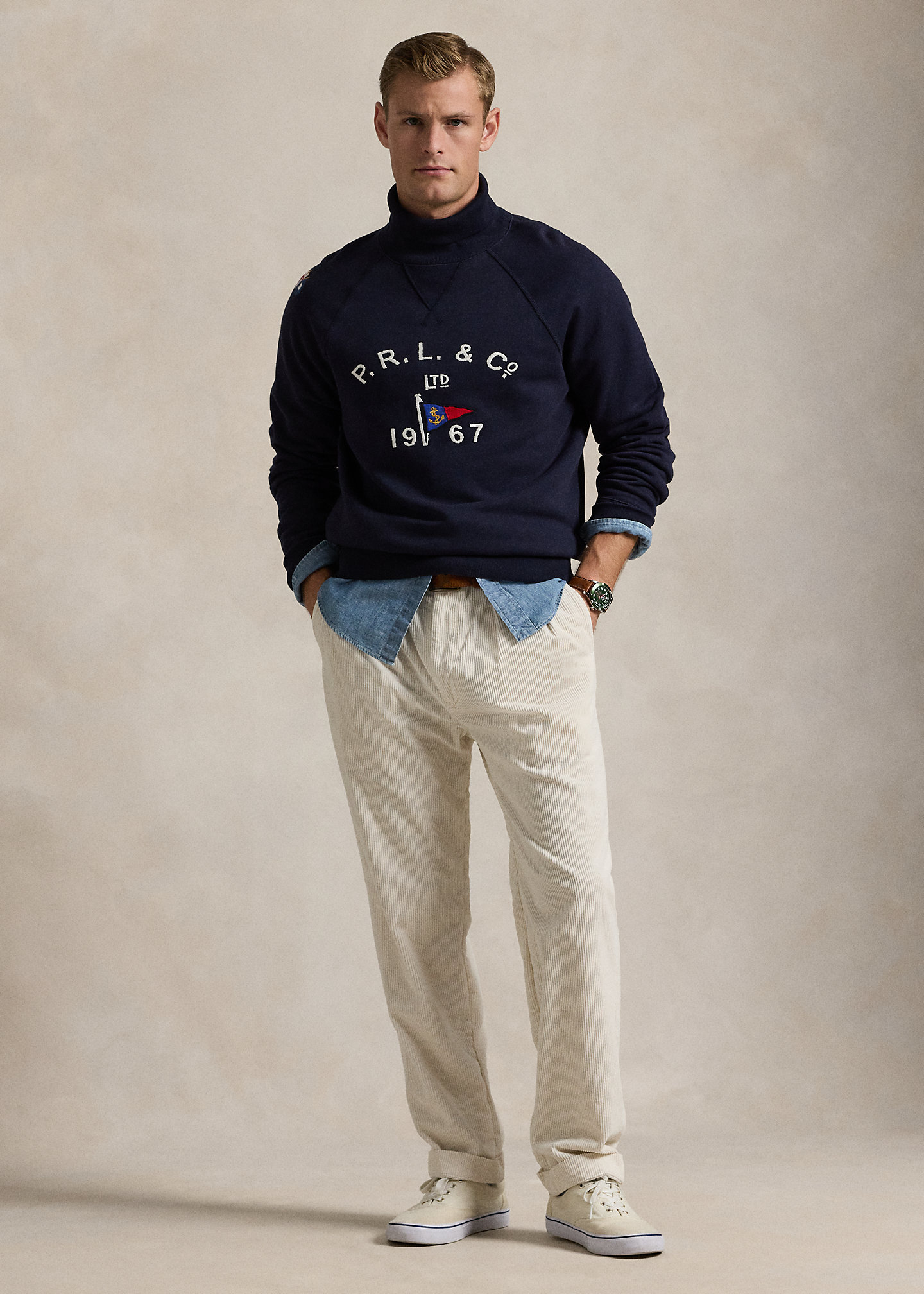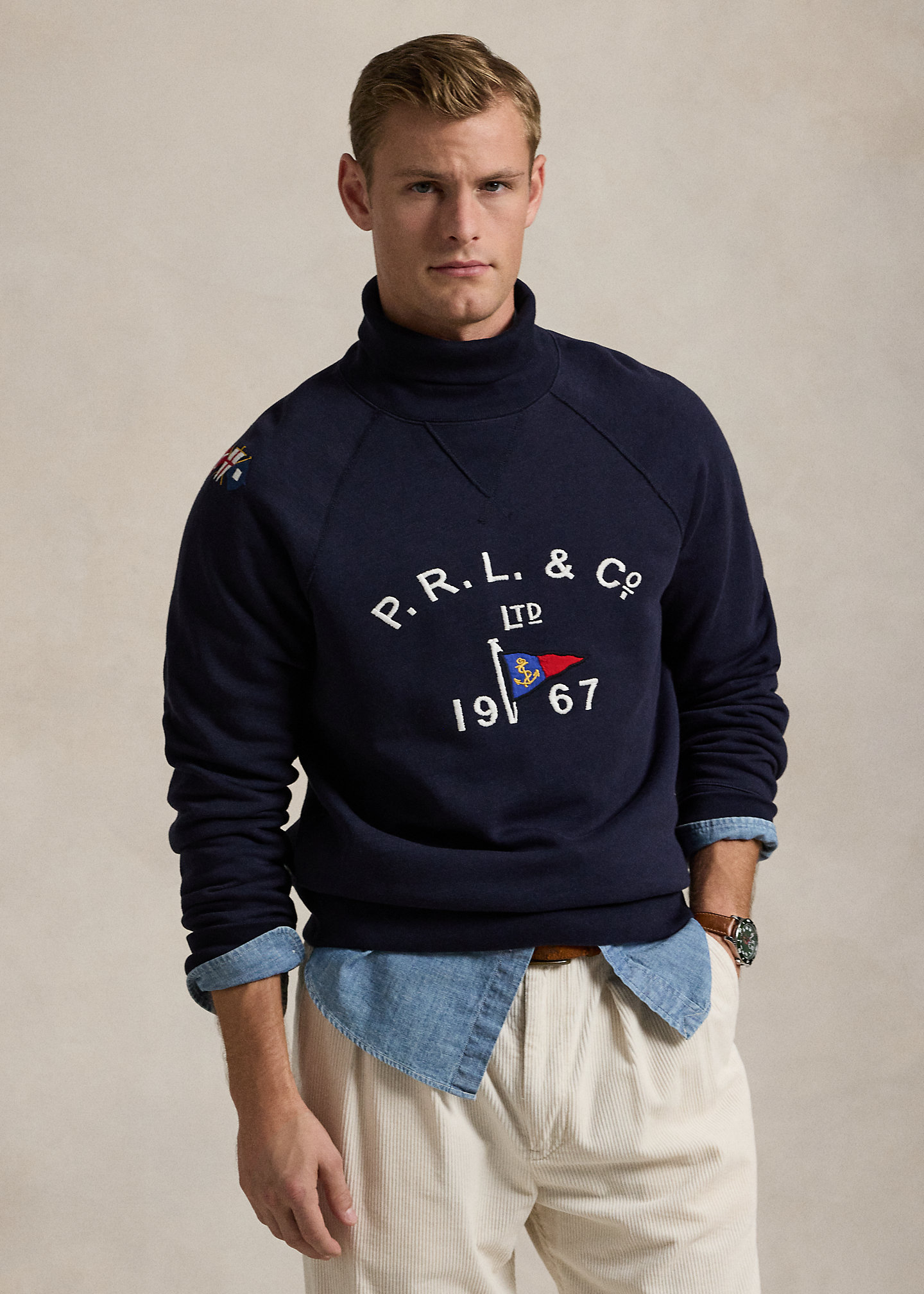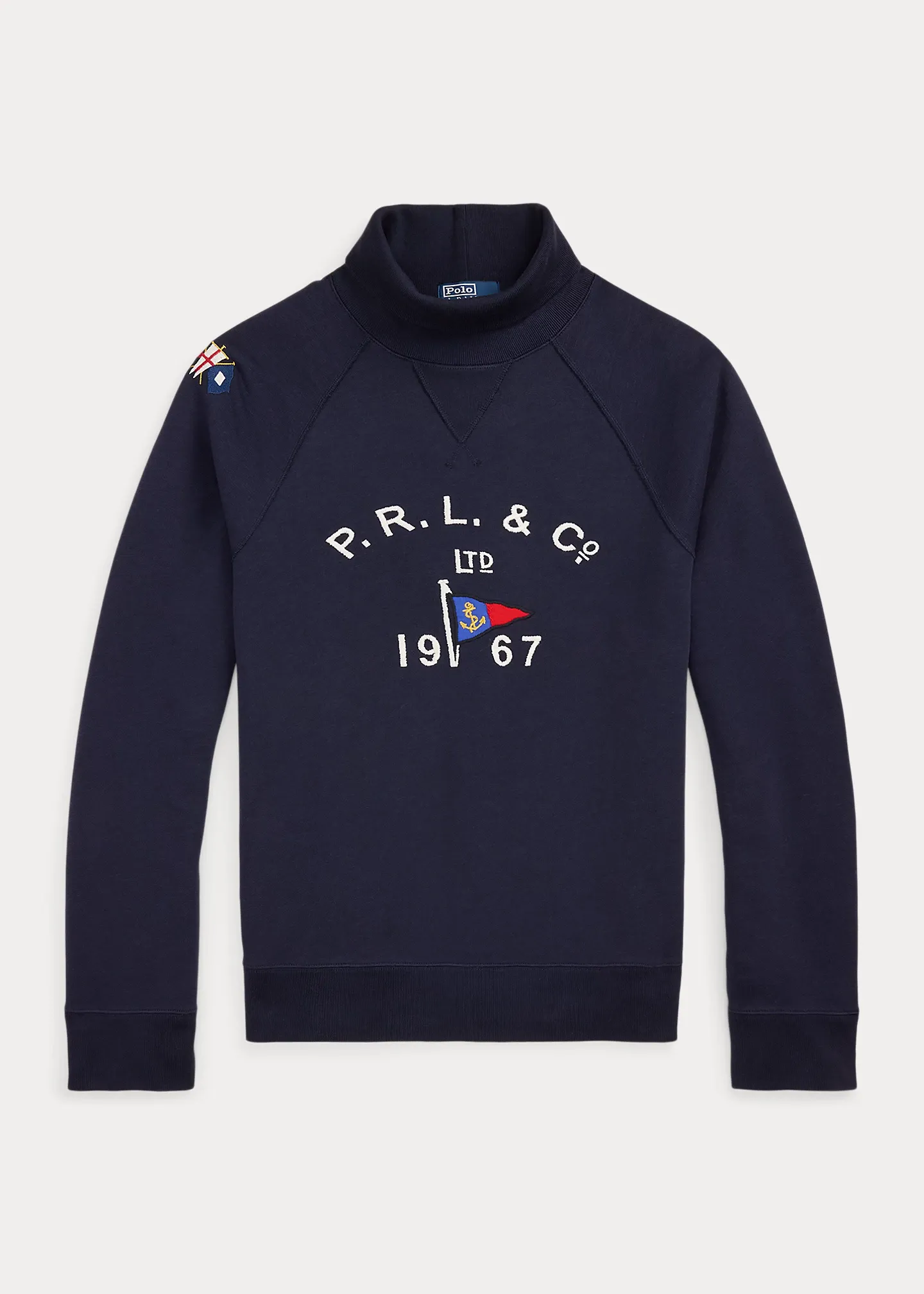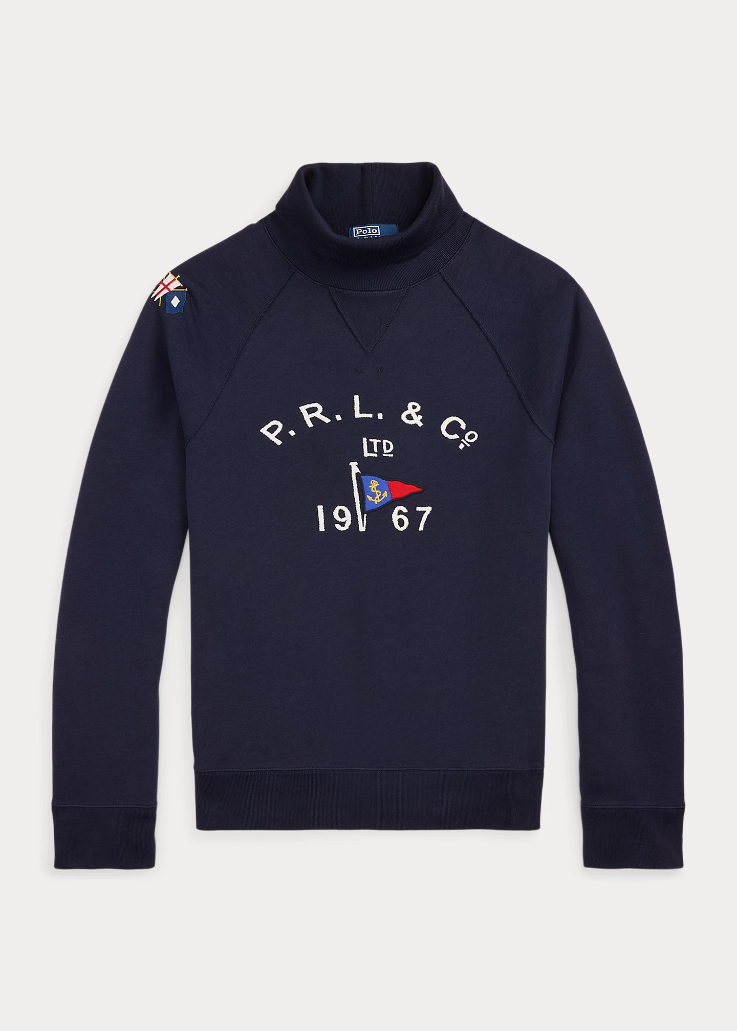 - “P.R.L. & Co. Ltd 1967” and a flag embroidered at the center front.