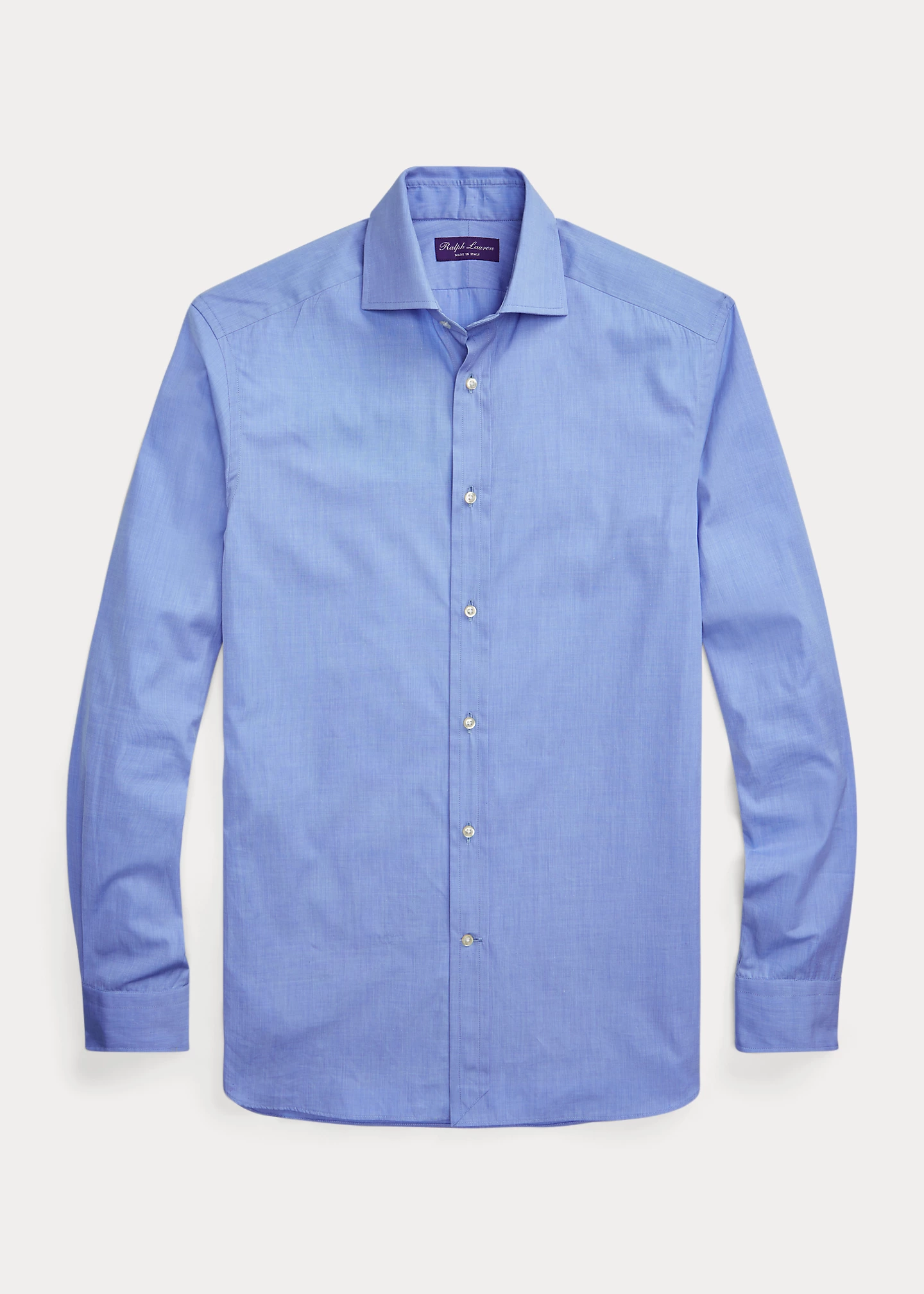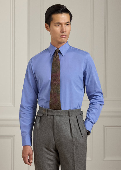 - Split pleated back yoke ensures smooth, contoured shoulders.