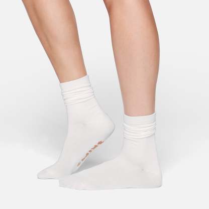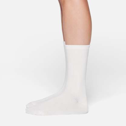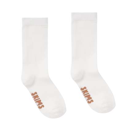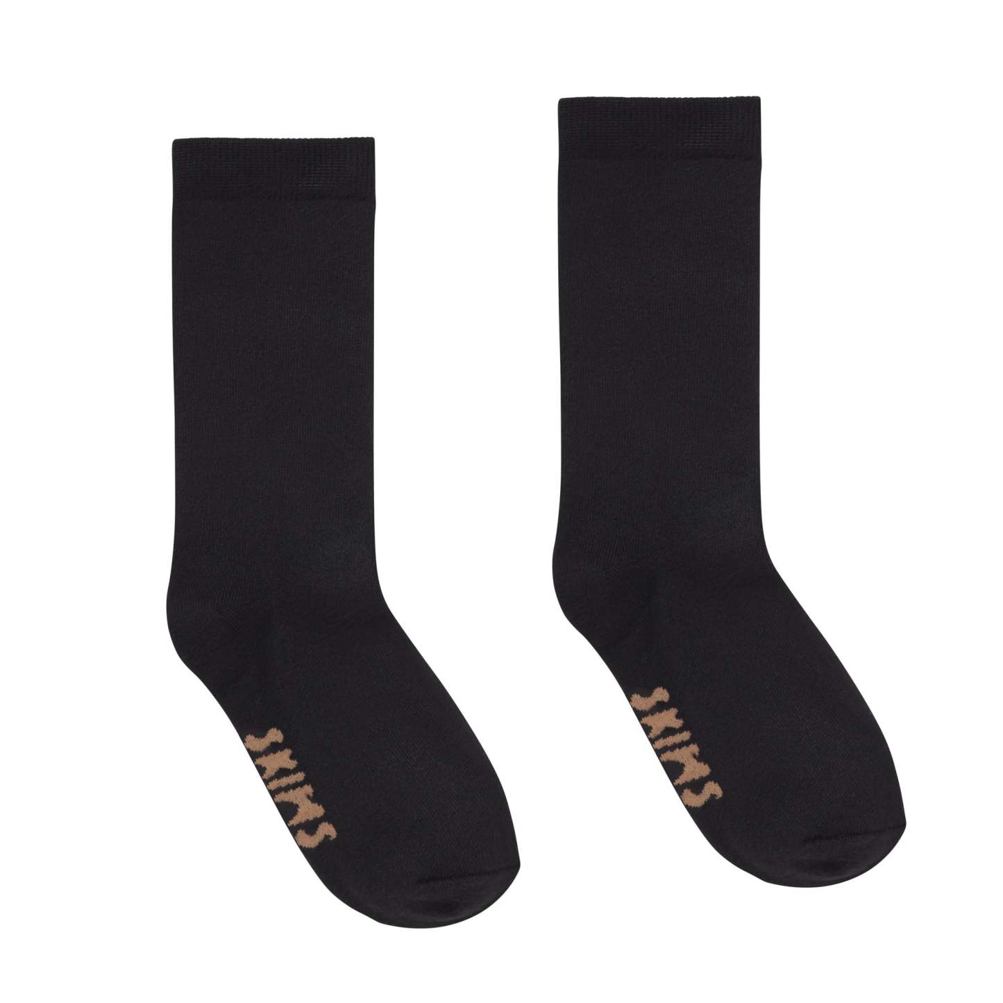 - Stretch fit, Seamed toe, Ribbed knit cuff, High elasticity, Knitted SKIMS logo at bottom of foot