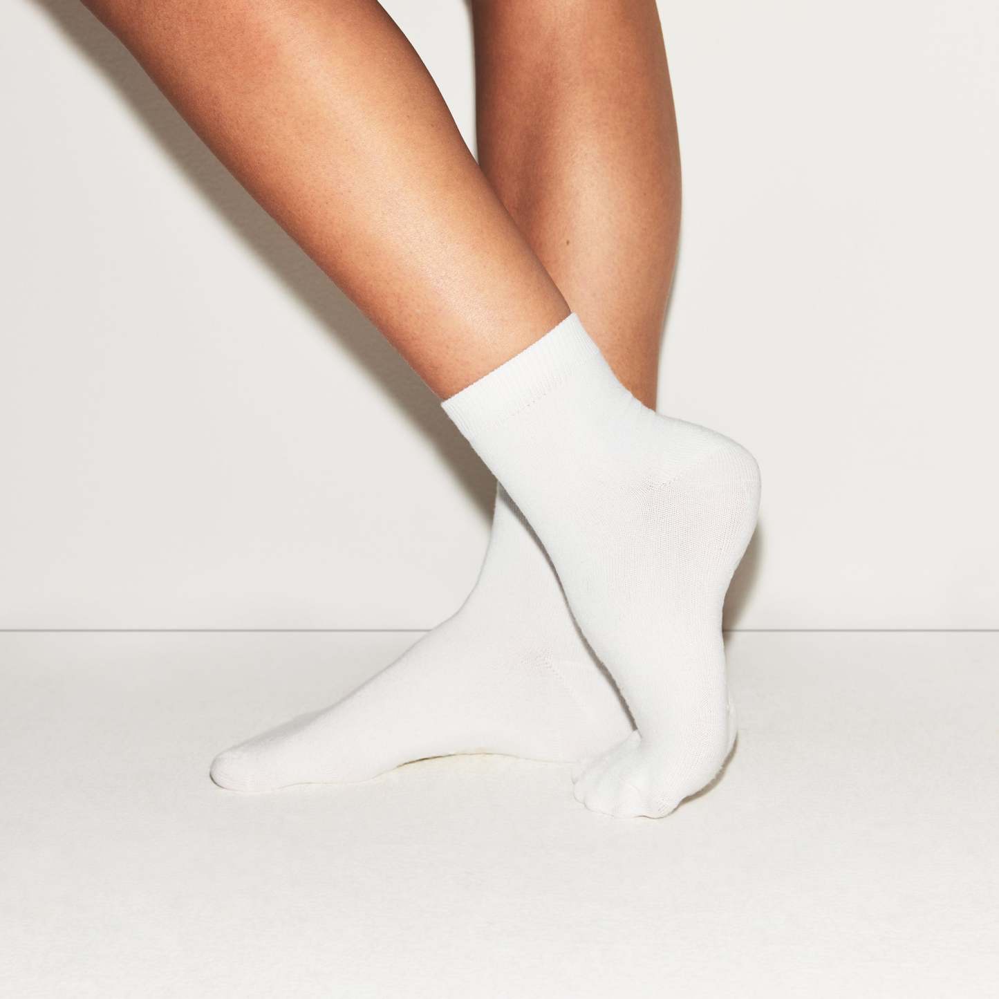 Your forever socks. Designed in our breathable, knit fabric, these quarter-length knit socks feature full arch support and a padded foot bed. Complete with left and right toe construction for unmatched comfort. Fits true to size.