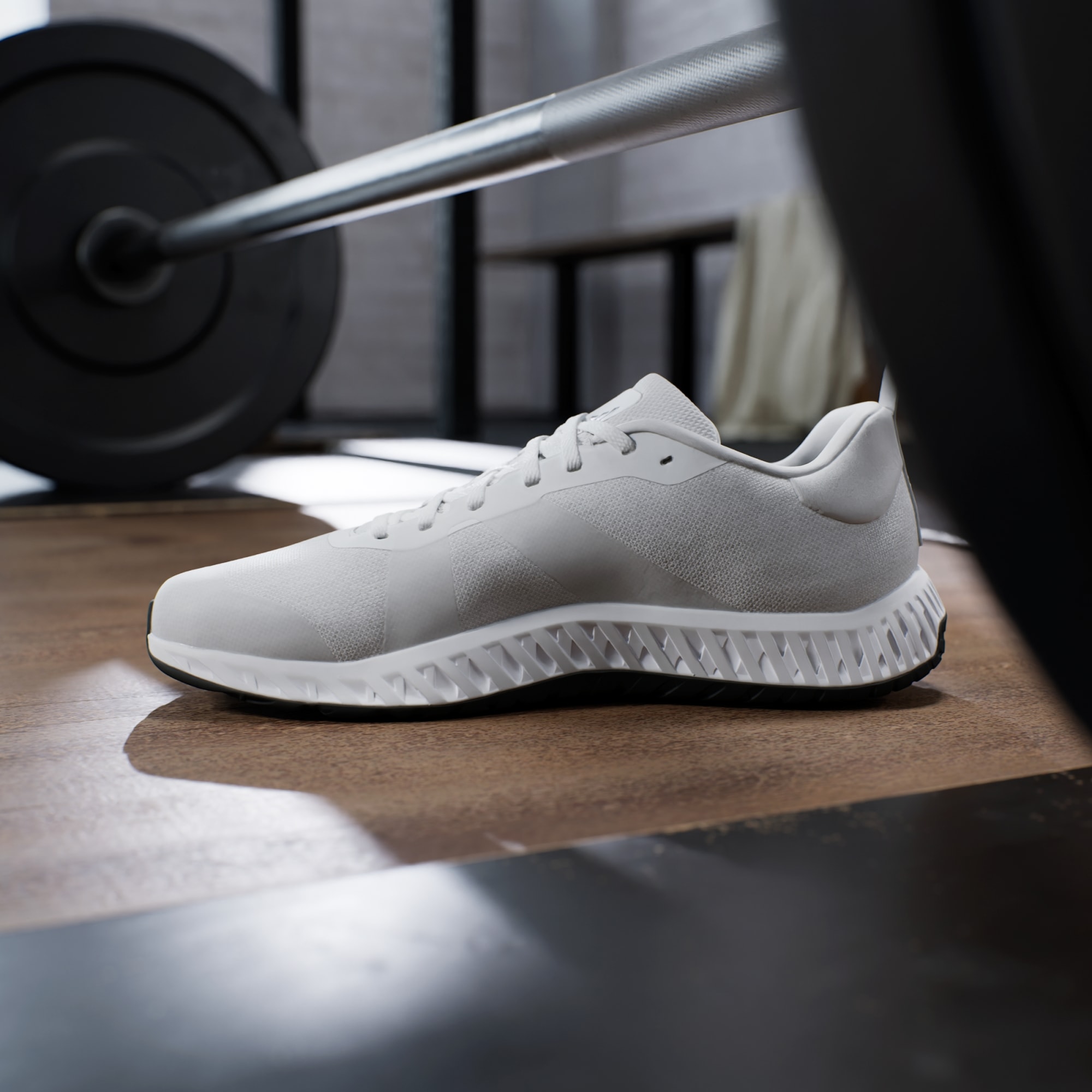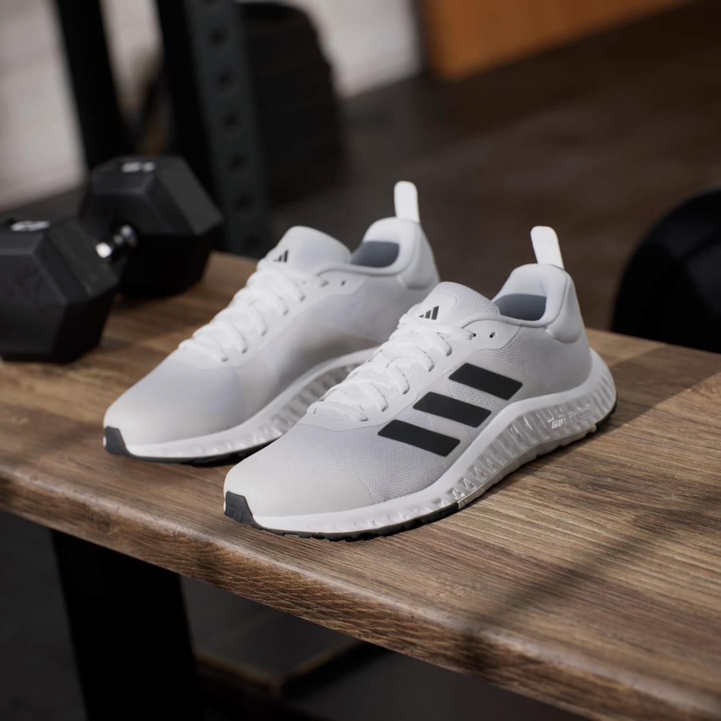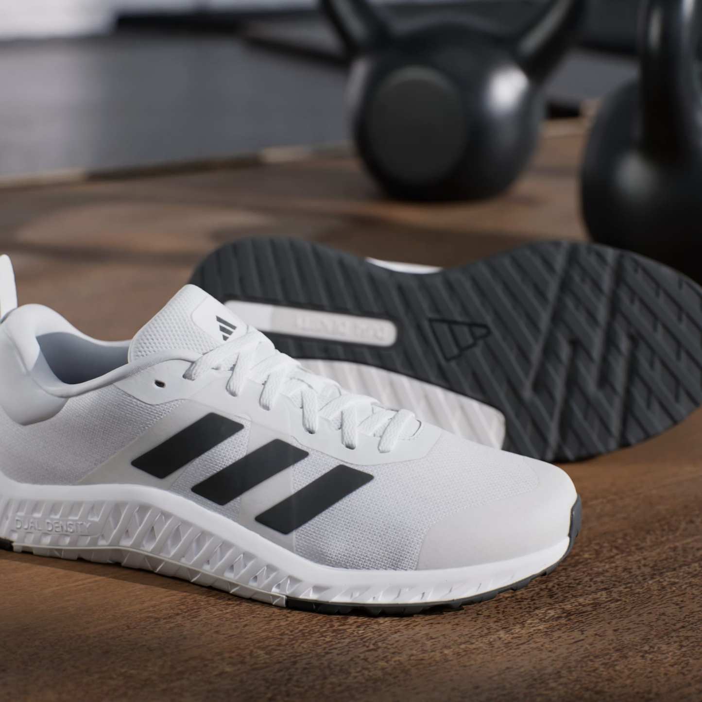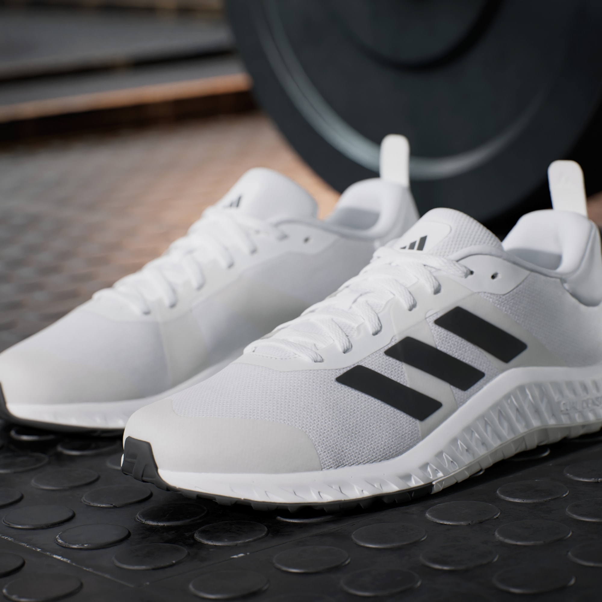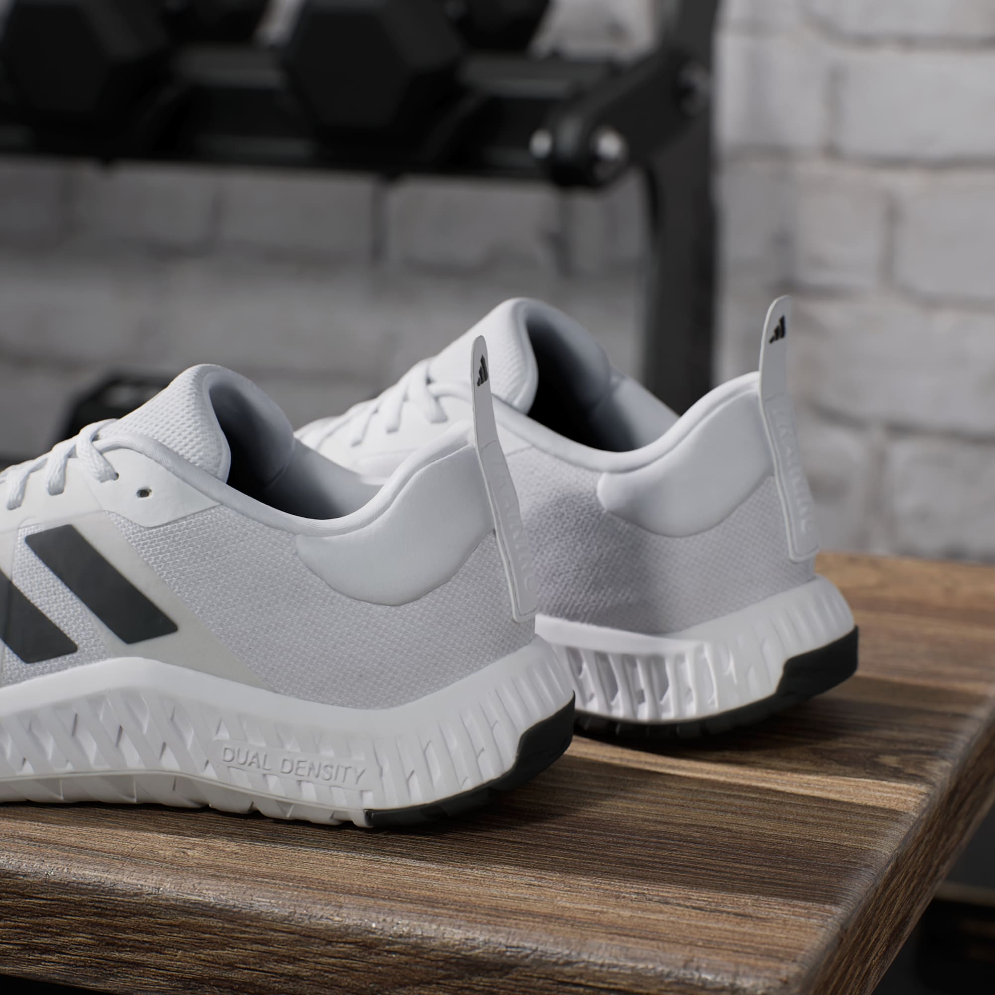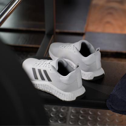 If you're ready to start on your fitness journey, these adidas shoes are right there with you. They've got the look and stability to keep you confident in the gym, from trying new machines to learning the feel of free weights. The knit upper is soft and breathable with a snug feel. A dual-density midsole, with firmer EVA outside surrounding softer EVA inside, adds steady balance without sacrificing comfort. The overall flatter shape creates a grounded feeling, so you can focus on your form. Made with a series of recycled materials, this upper features at least 50% recycled content. This product represents just one of our solutions to help end plastic waste.