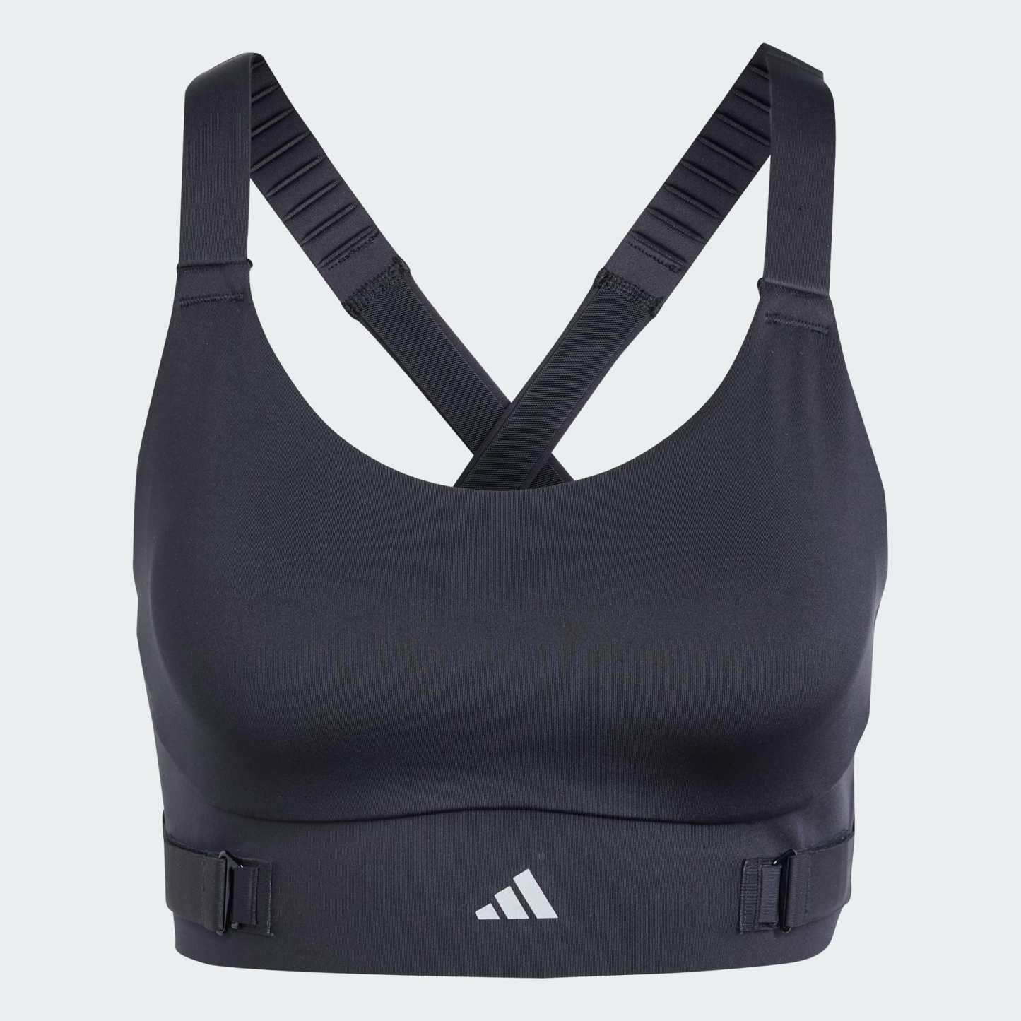 Push yourself to go farther and faster in this adidas running bra. The wrapped design distributes weight evenly for a secure, comfortable feel. Customize the fit to your exact needs with the adjustable straps and chest band. Stay focused mile after mile thanks to moisture-absorbing AEROREADY. Experience bounce-free, chafe-free support and run free. This product is made with at least 70% recycled materials. By reusing materials that have already been created, we help to reduce waste and our reliance on finite resources and reduce the footprint of the products we make.
