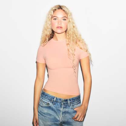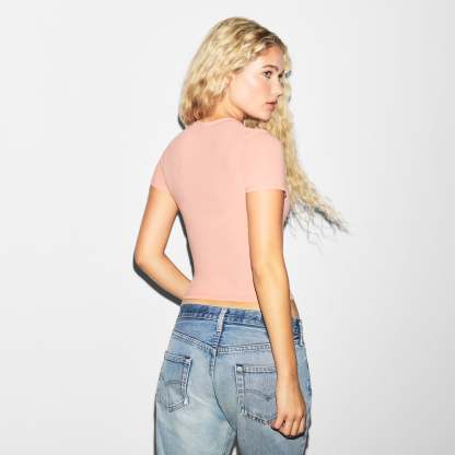 - Fitted t-shirt, Crew neckline, Single layered