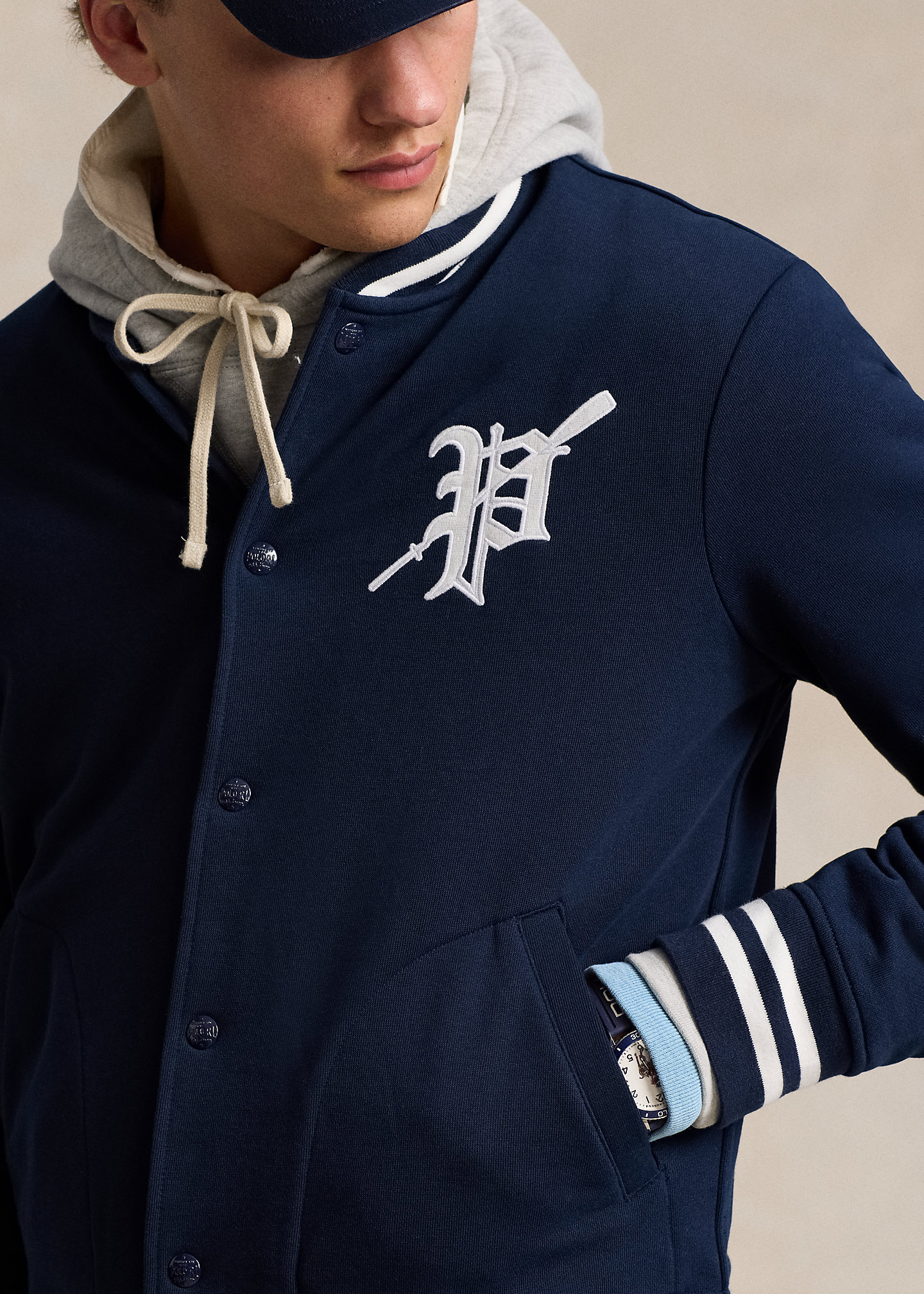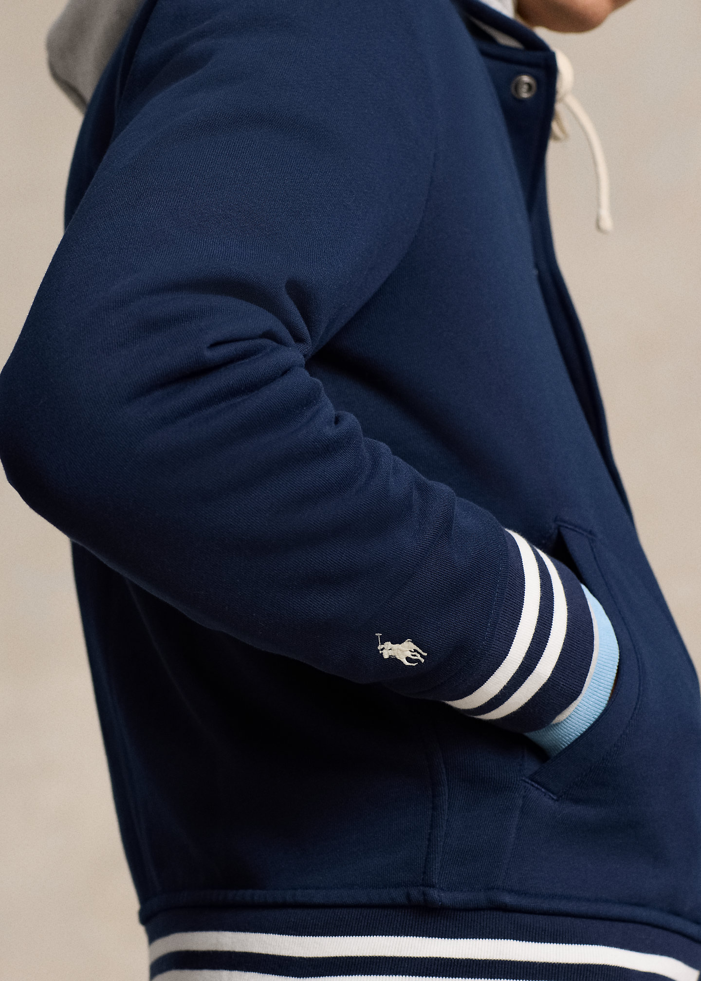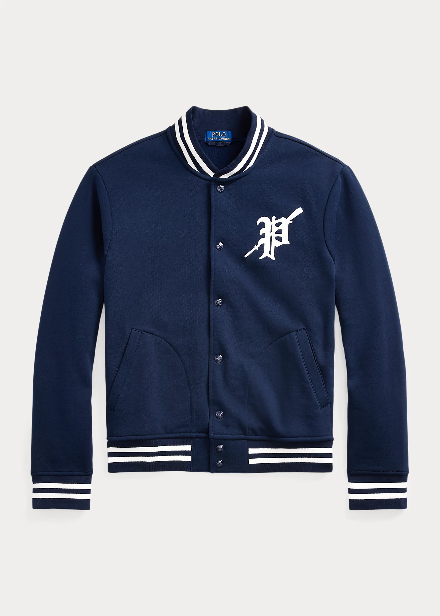 - Striped, ribbed baseball collar. Snapped placket. Long sleeves with striped, ribbed cuffs.