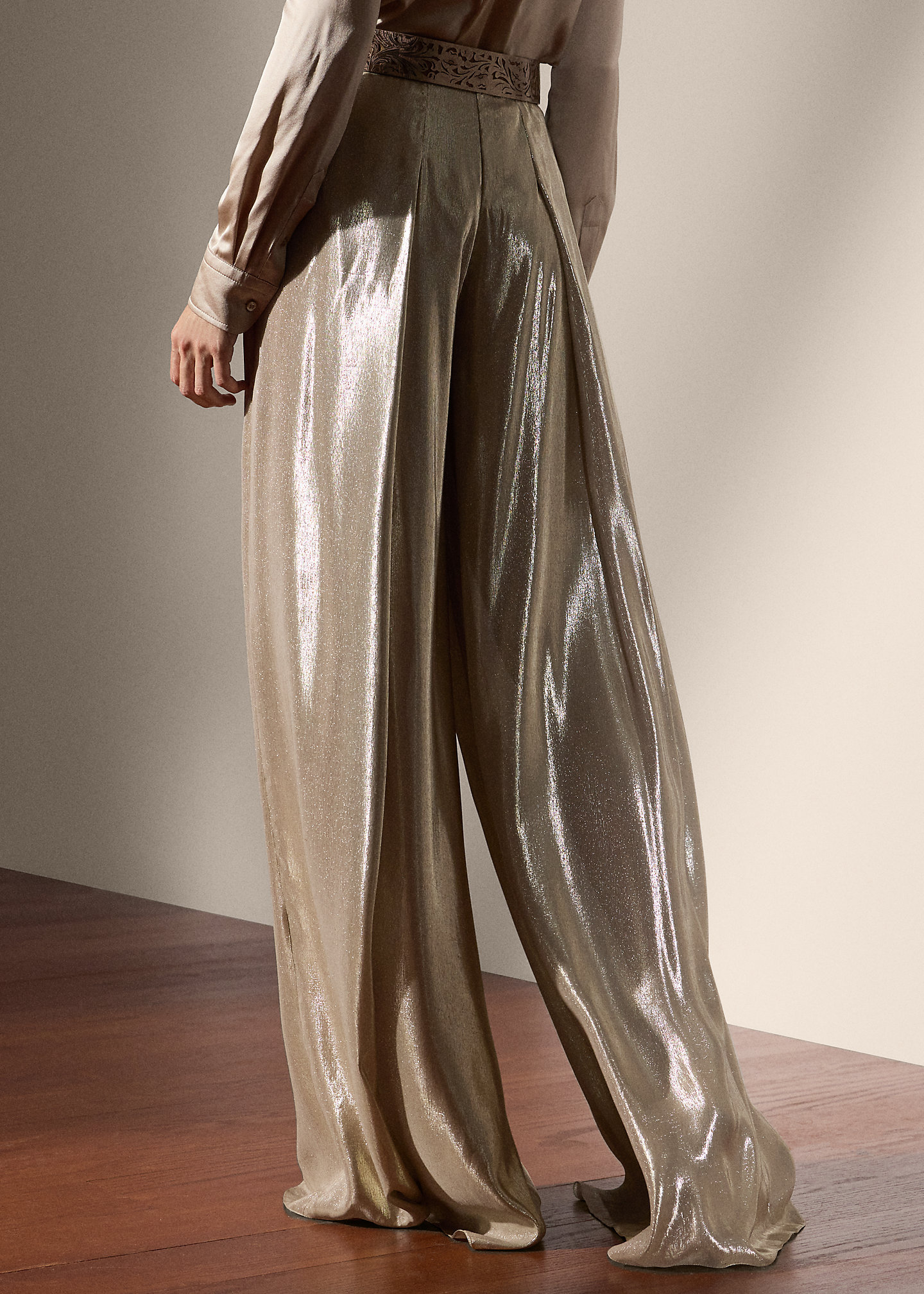 48% viscose, 36% mulberry silk, 16% metallic fiber.