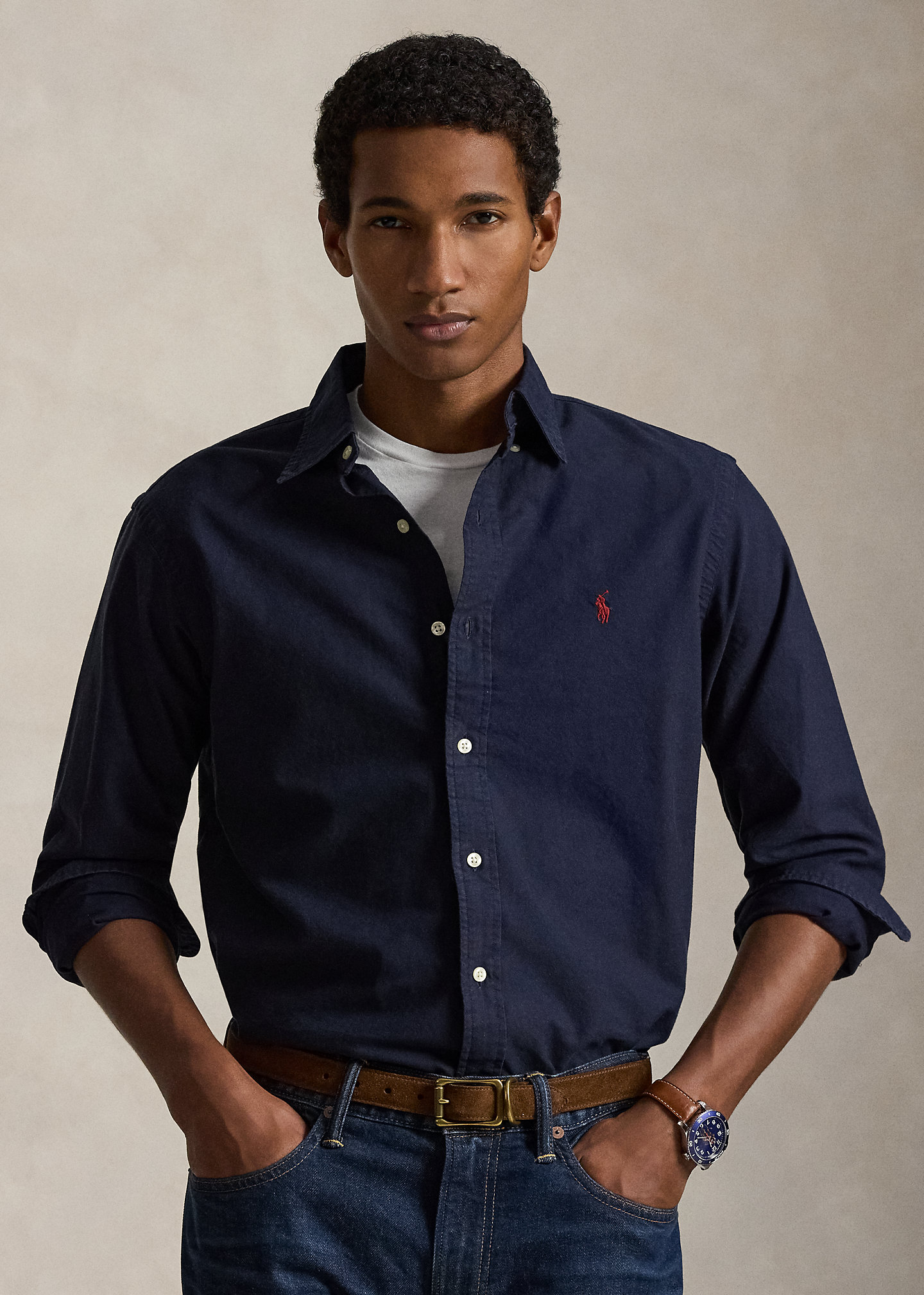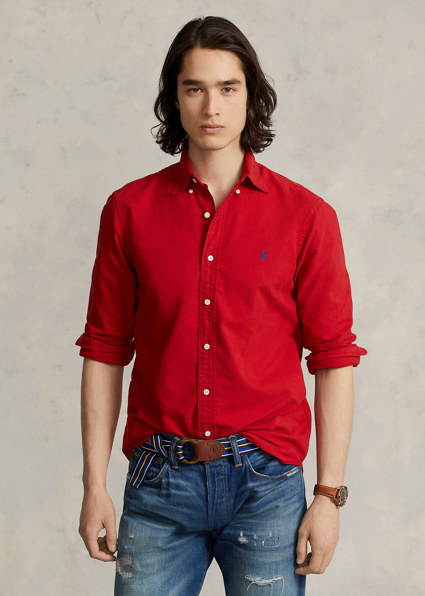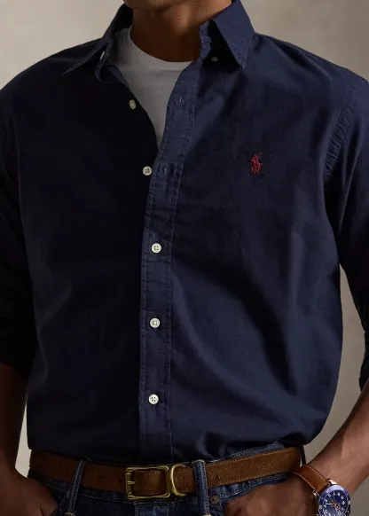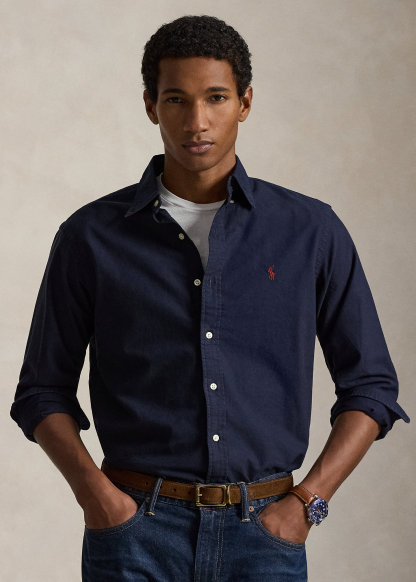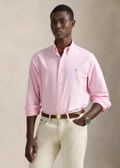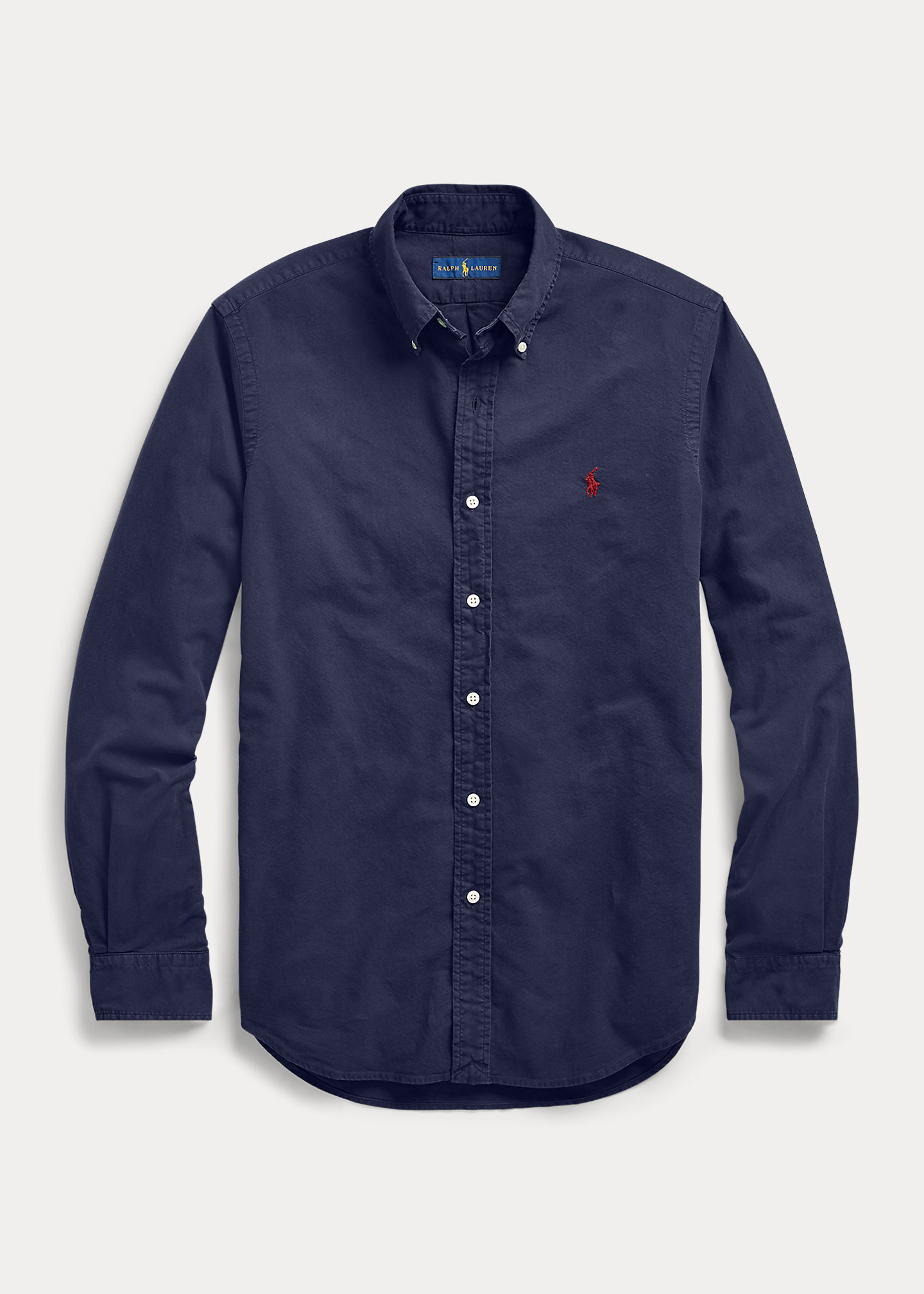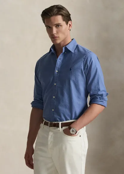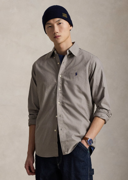 - Button-down point collar. Buttoned placket.