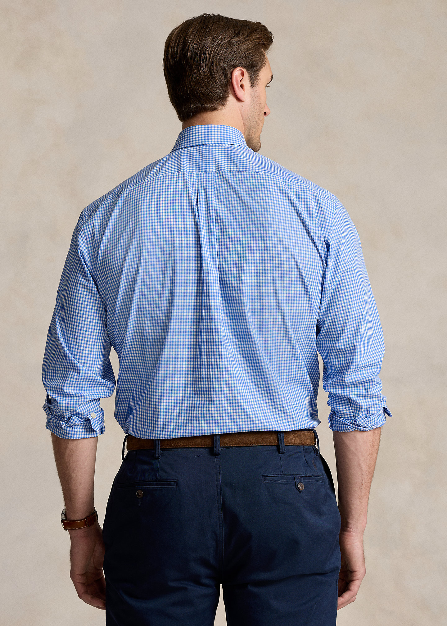 - Button-down point collar. Buttoned placket.